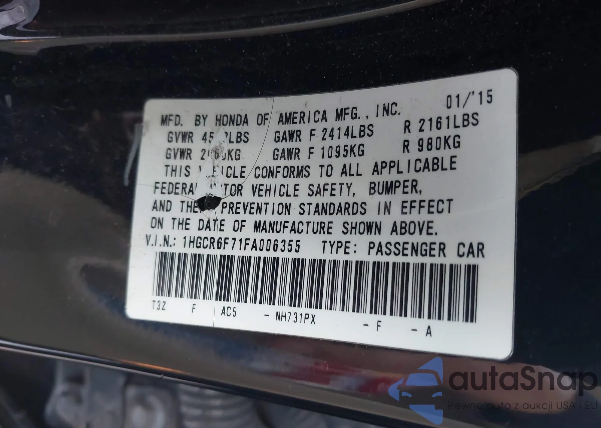 VIN: 1HGCR6F71FA006355
