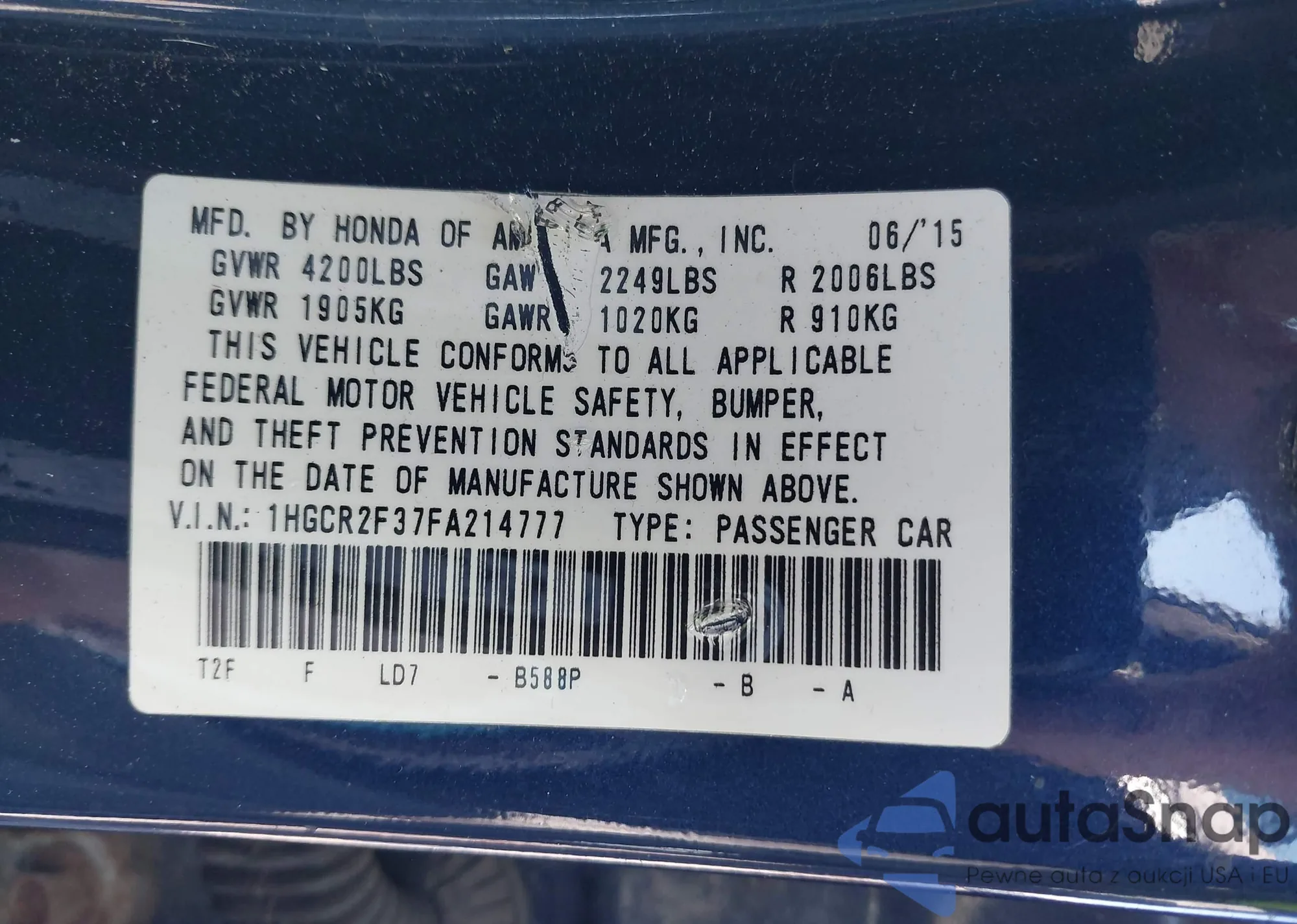 VIN: 1HGCR2F37FA214777