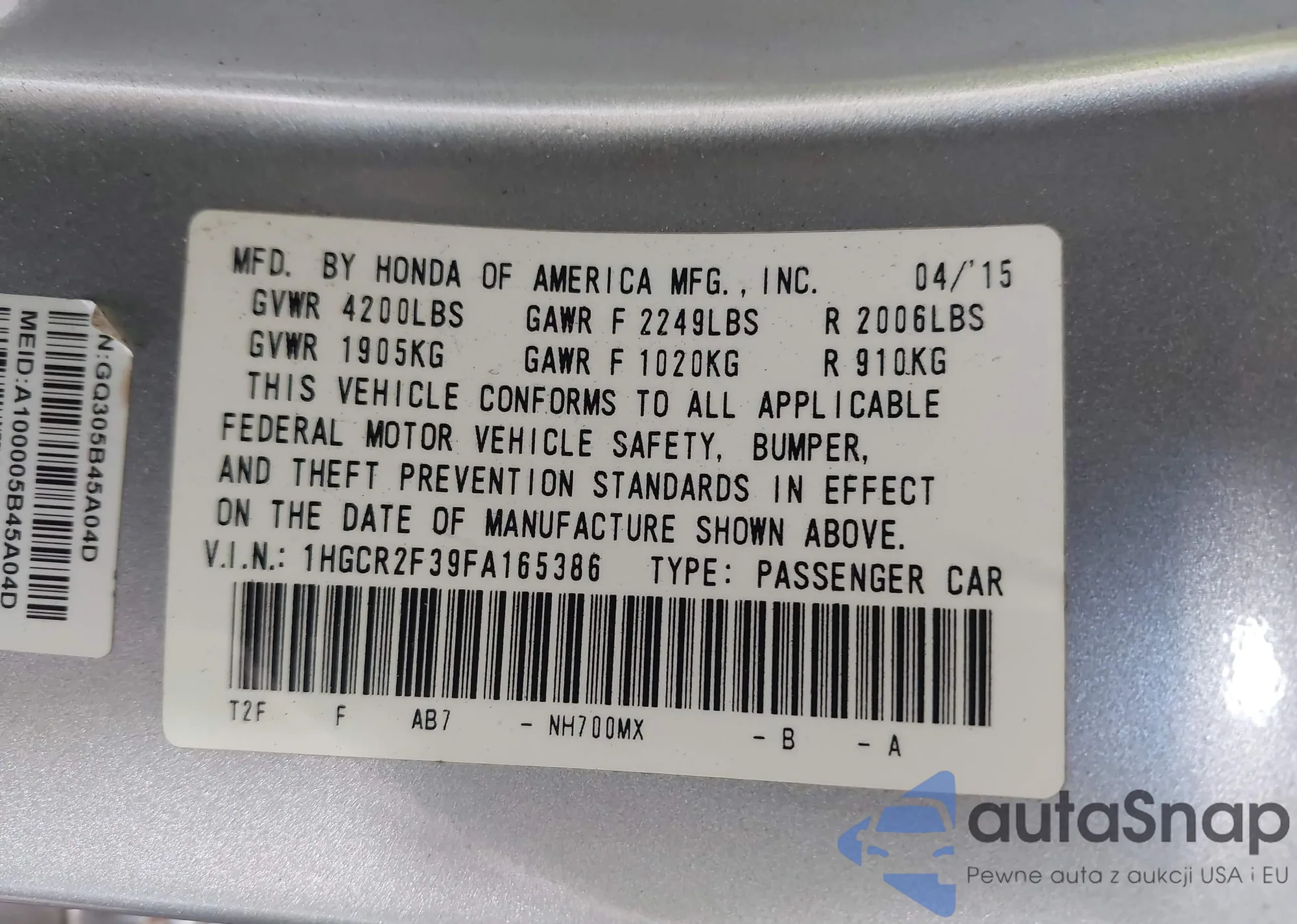VIN: 1HGCR2F39FA165386