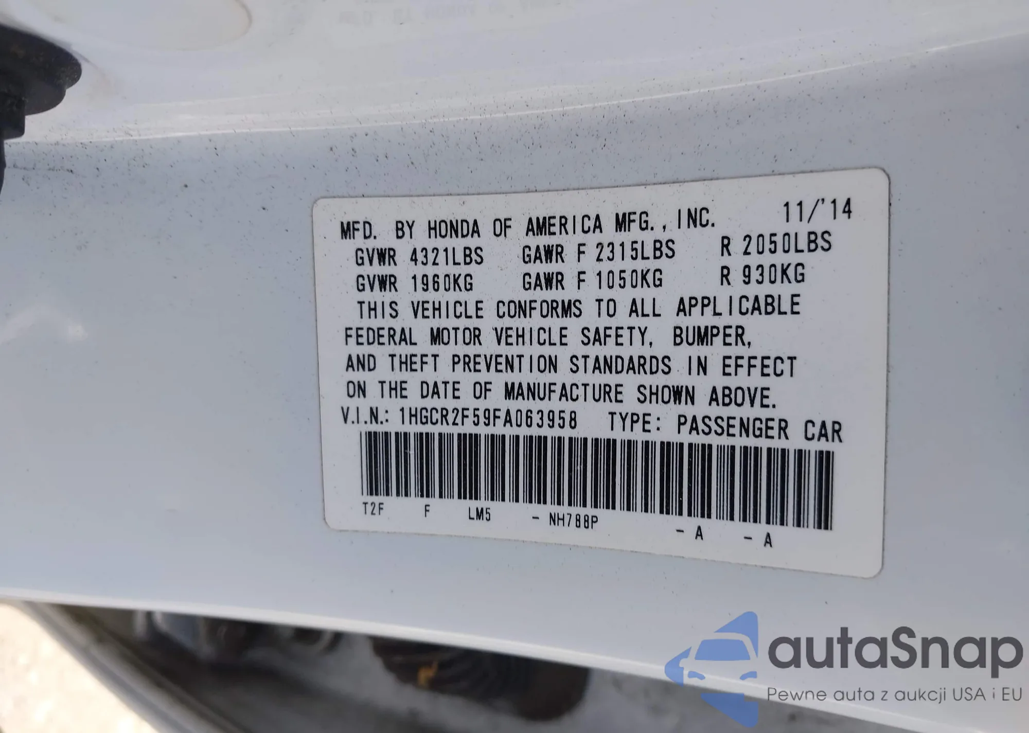 VIN: 1HGCR2F59FA063958