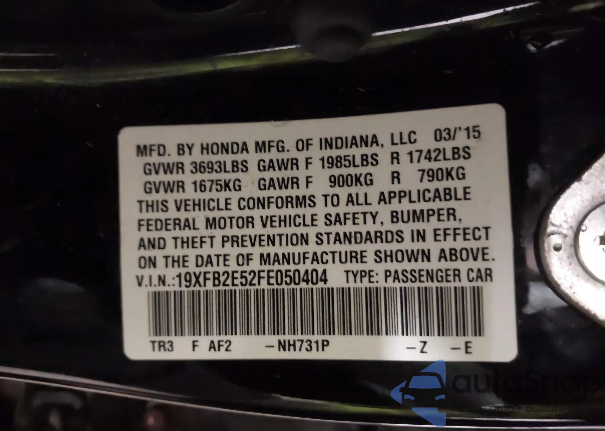 • VIN: 19XFB2E52FE050404