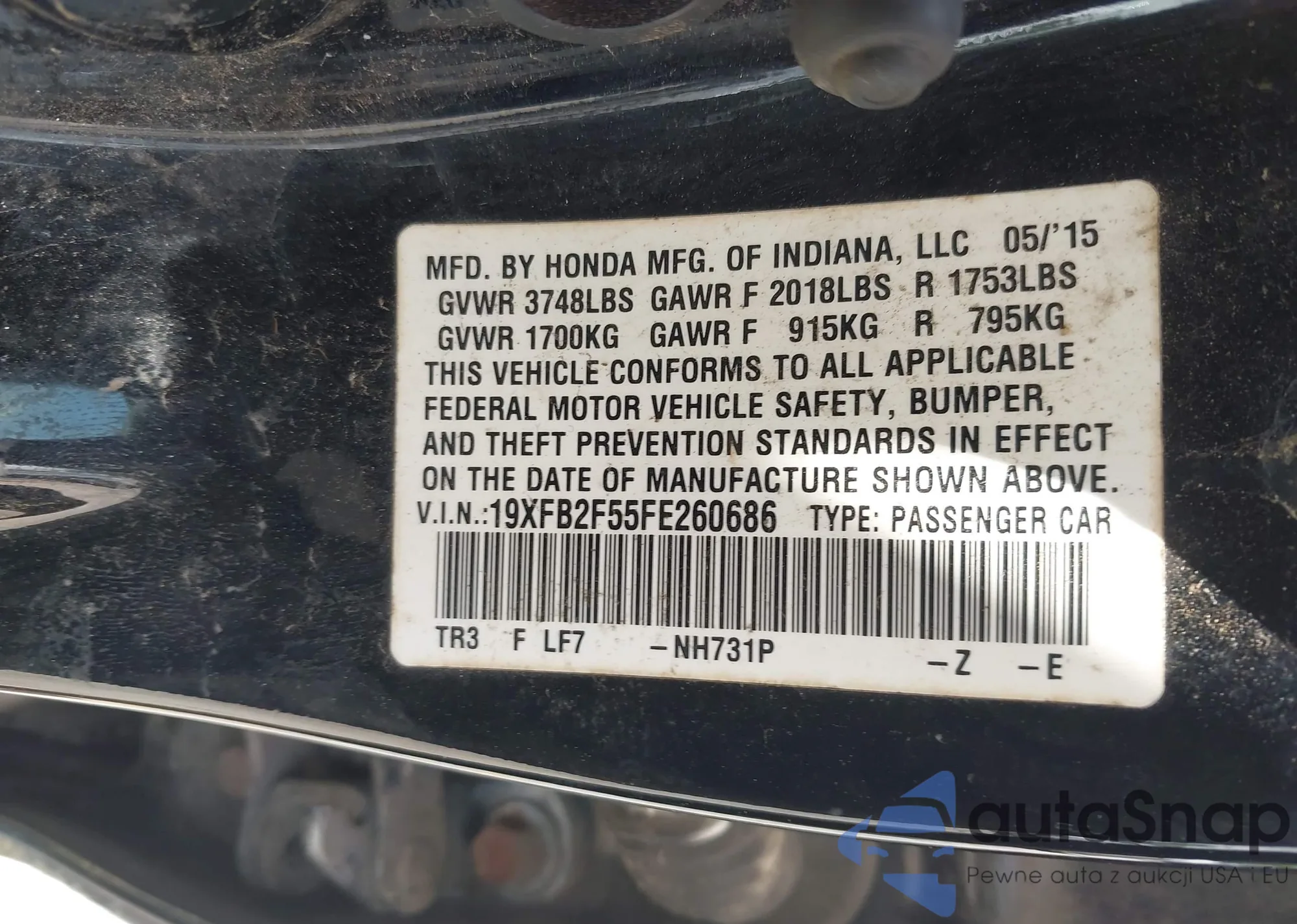 VIN: 19XFB2F55FE260686