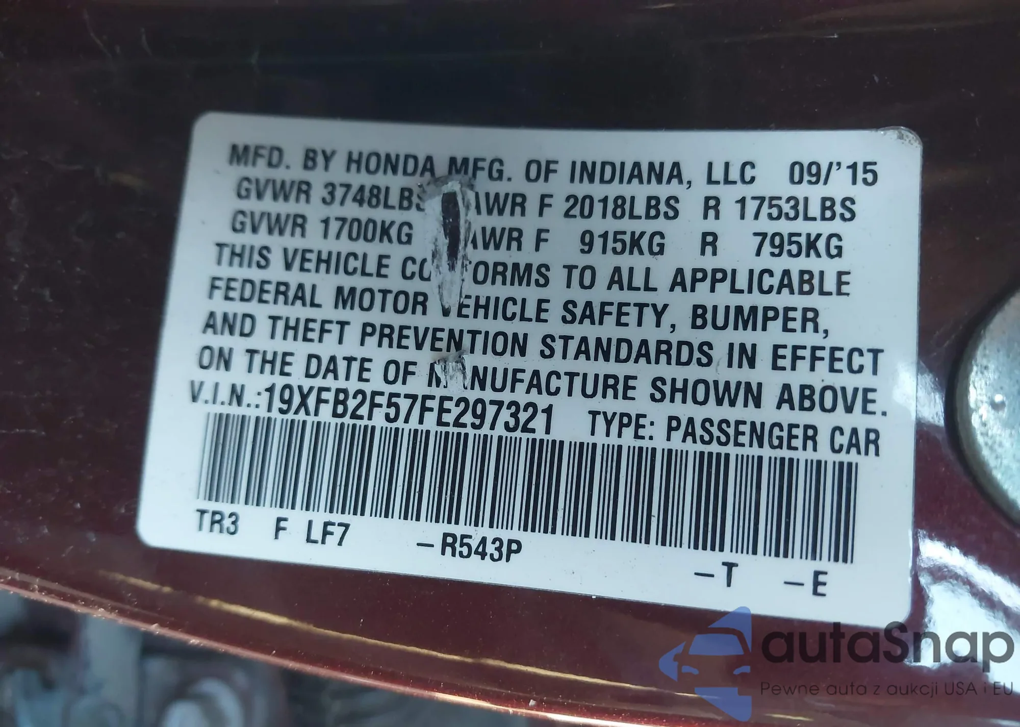 VIN: 19XFB2F57FE297321