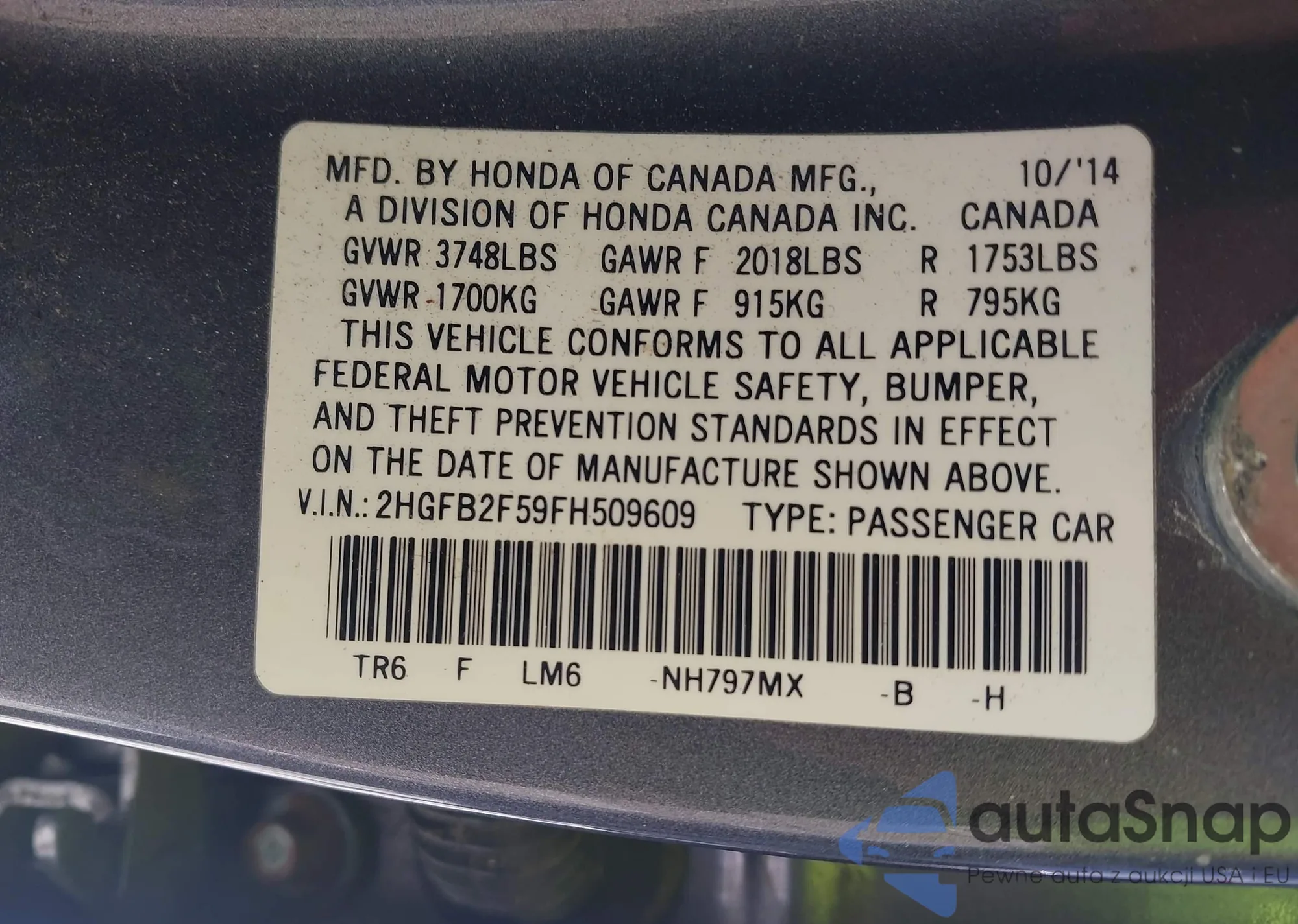 VIN: 2HGFB2F59FH509609