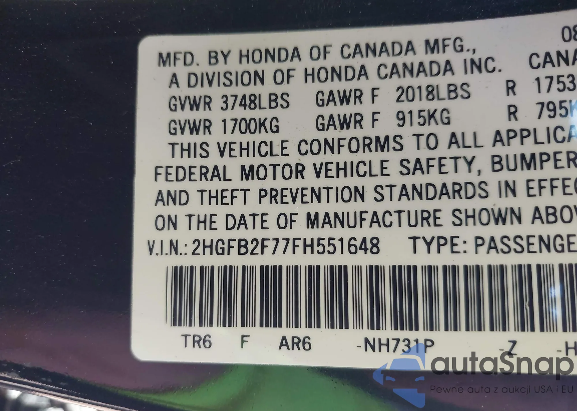 VIN: 2HGFB2F77FH551648