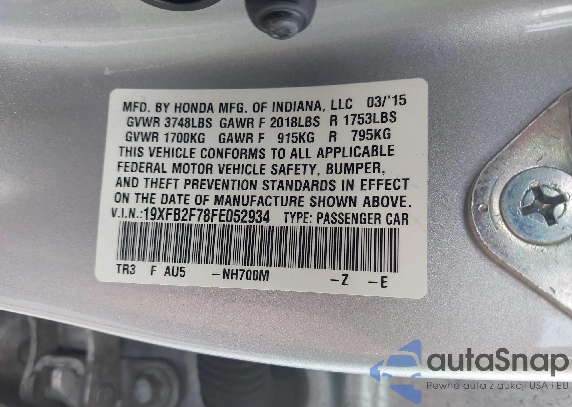VIN: 19XFB2F78FE052934