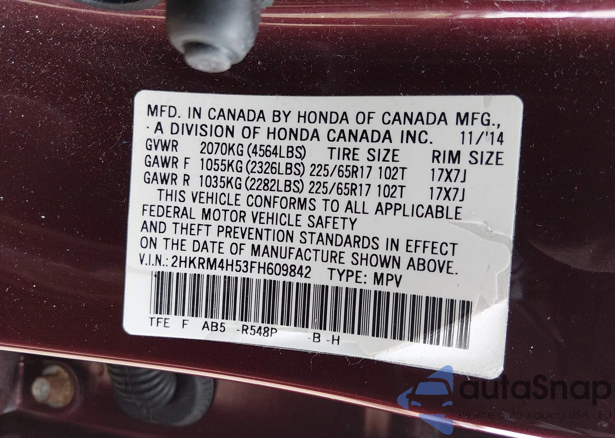 VIN: 2HKRM4H53FH609842
