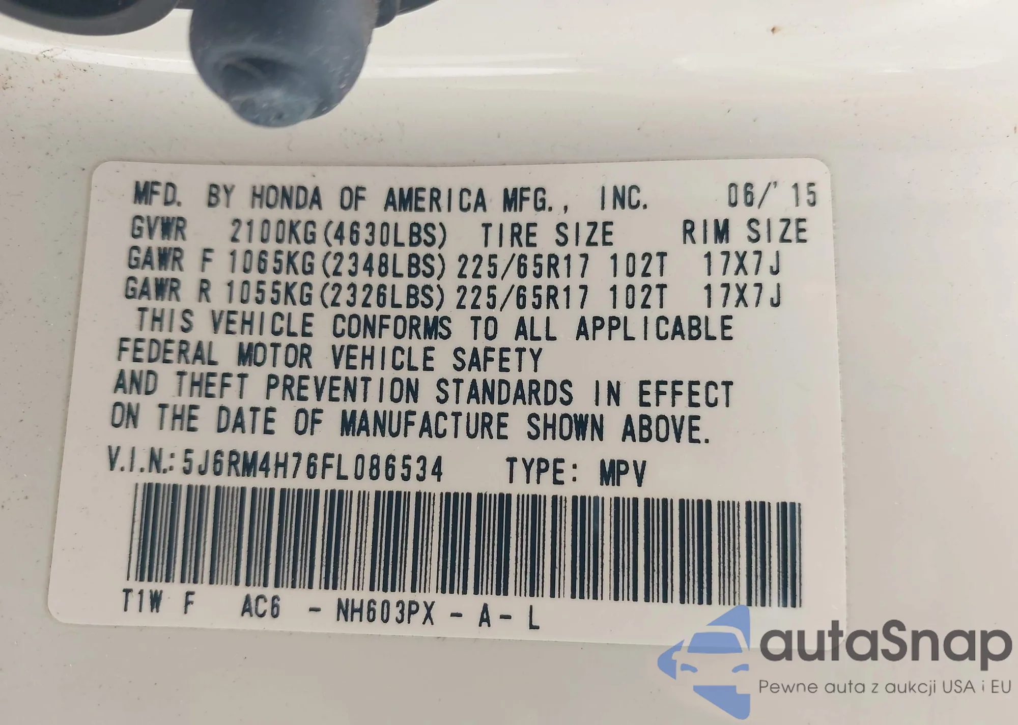 VIN: 5J6RM4H76FL086534
