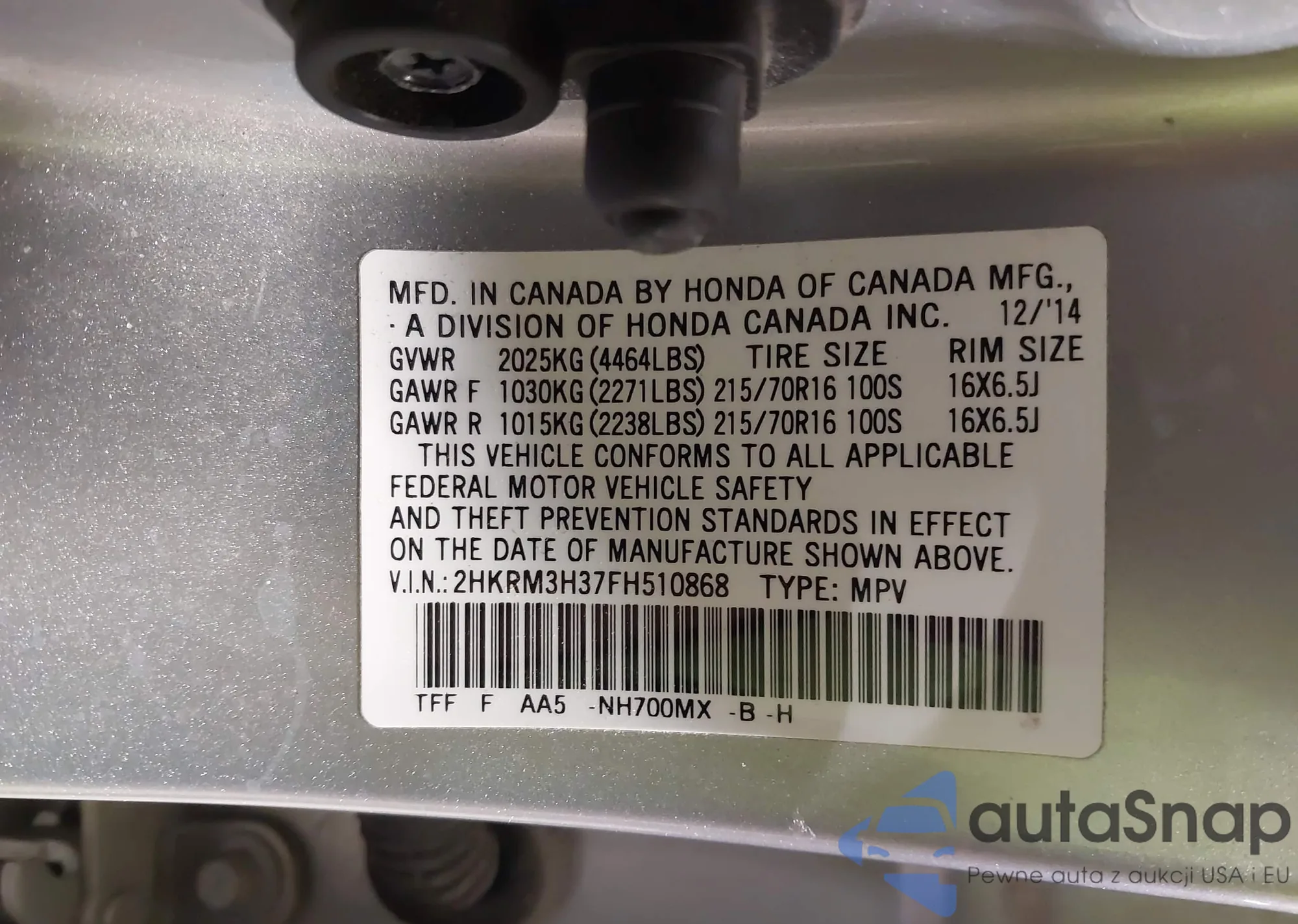 Автомобиль Honda CR-V 2015 (VIN 2HKRM3H37FH510868) ранее не участвовал в торгах. Документы чистые, пробег соответствует или ниже среднего по рынку. Продаётся страховой компанией — рекомендуем покупку. Доставка в порт займет около 6–8 недель.