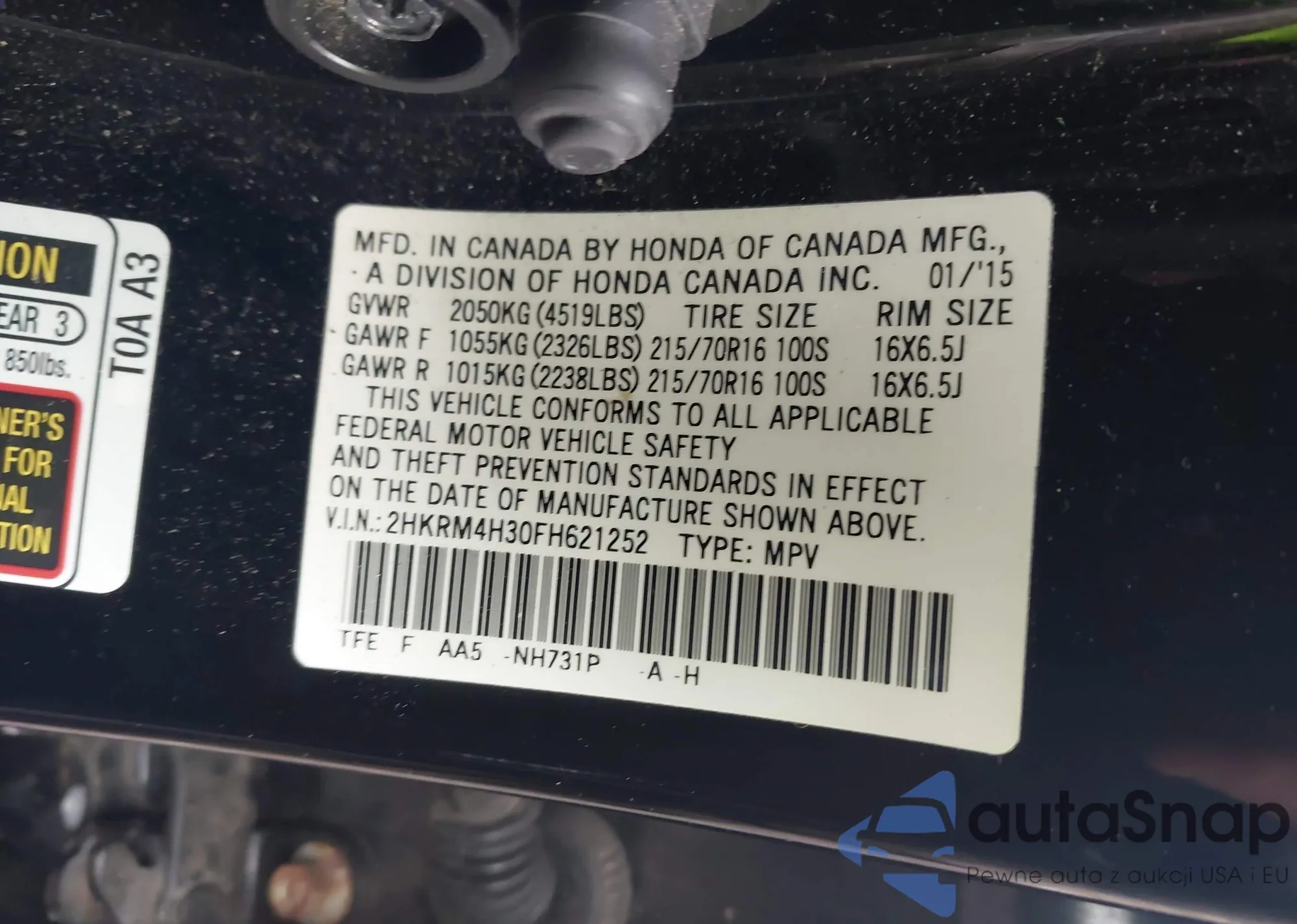 VIN: 2HKRM4H30FH621252