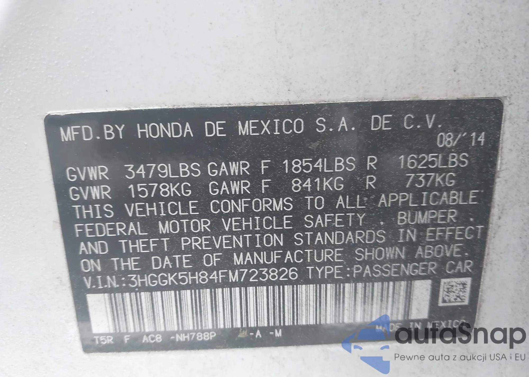 VIN: 3HGGK5H84FM723826