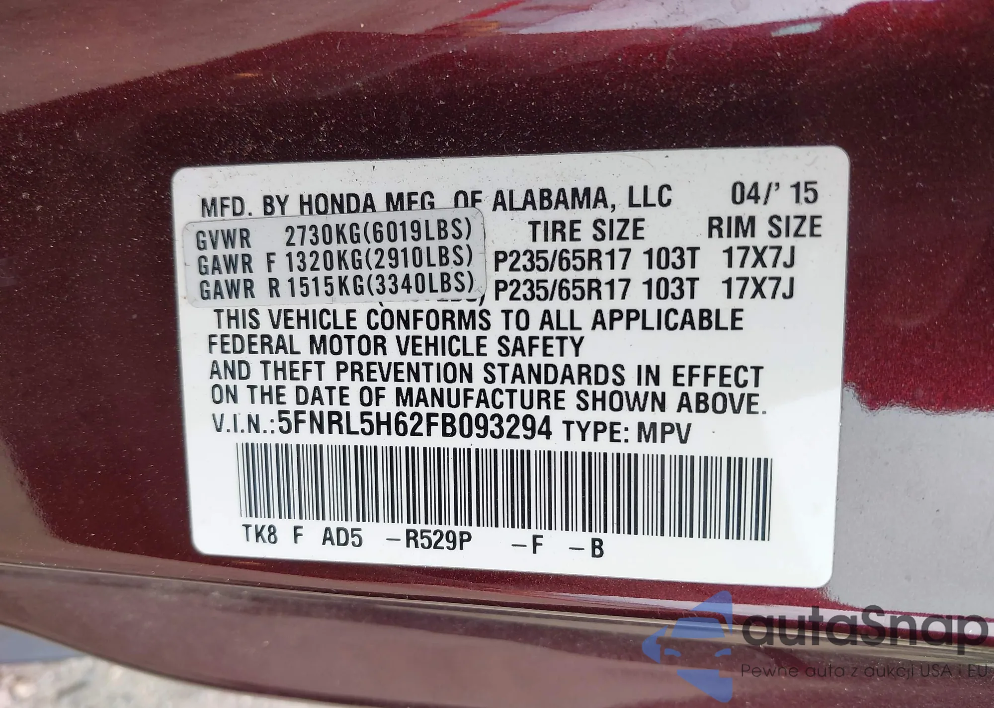 VIN: 5FNRL5H62FB093294