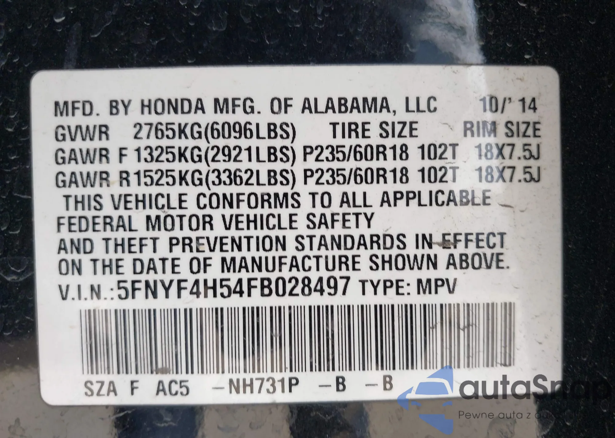 Автомобиль Honda Pilot 2015 (VIN 5FNYF4H54FB028497) ранее не участвовал в торгах. Документы чистые, пробег соответствует или ниже среднего по рынку. Продаётся страховой компанией — рекомендуем покупку. Доставка в порт займет около 6–8 недель.