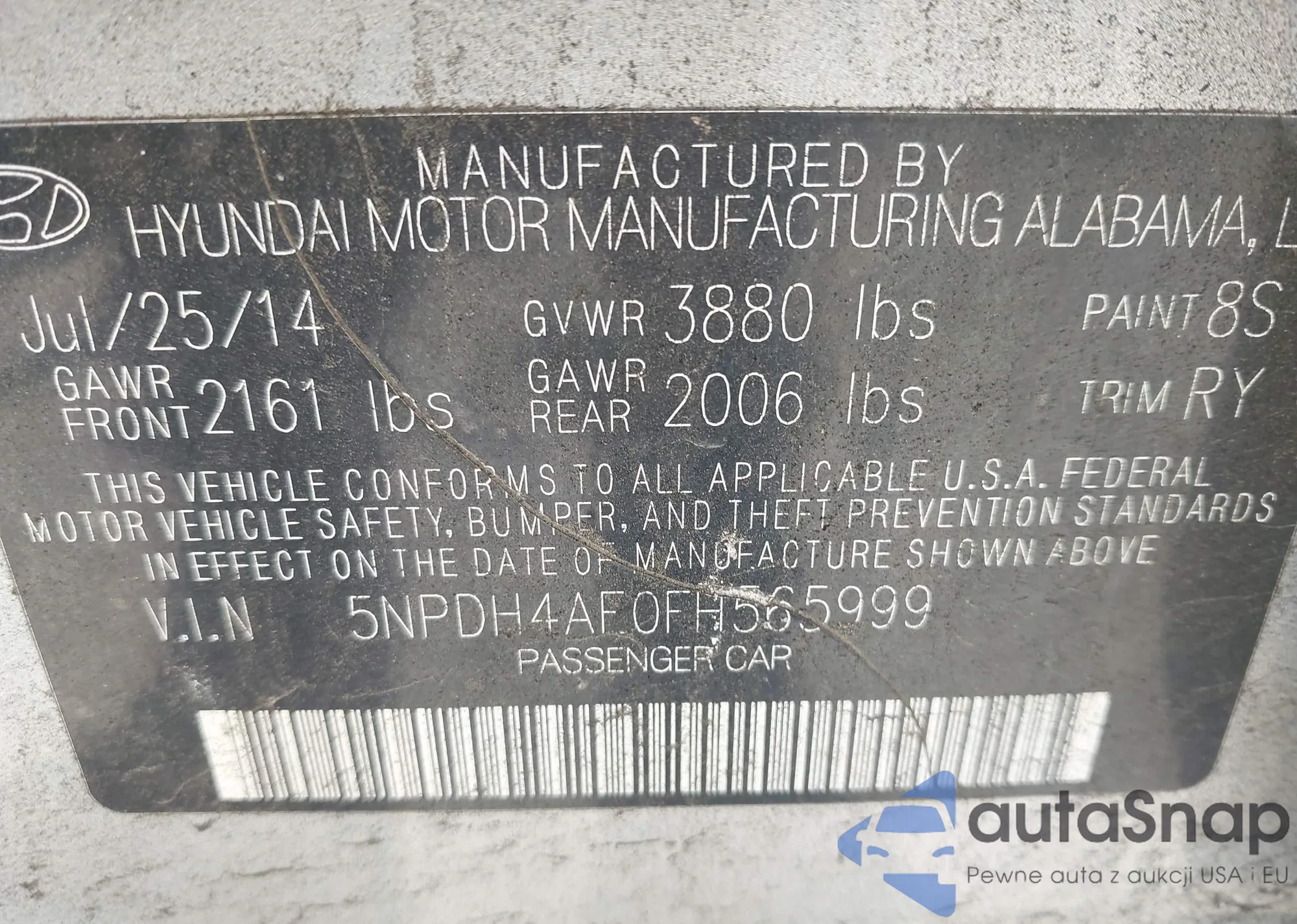 VIN: 5NPDH4AE0FH565999
