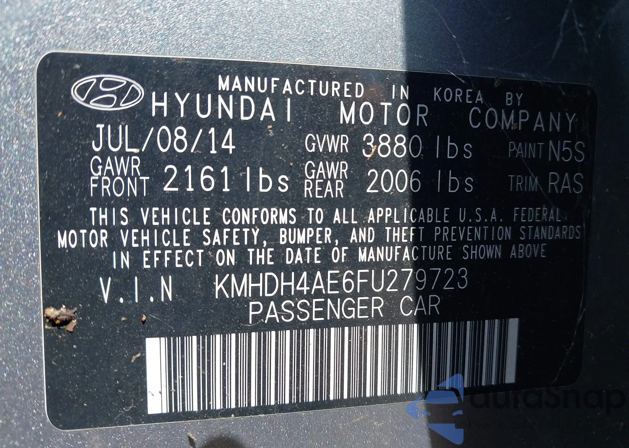 VIN: KMHDH4AE6FU279723