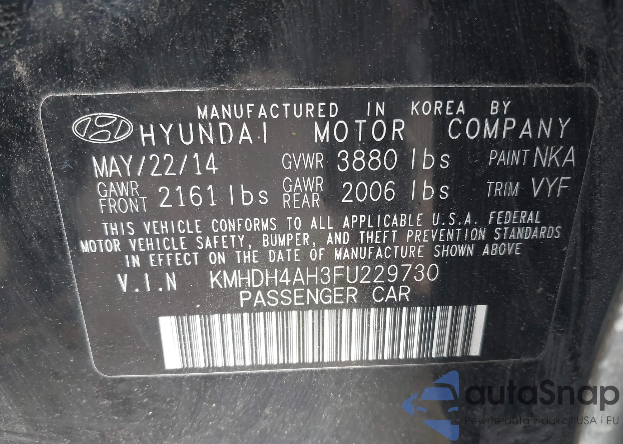 VIN: KMHDH4AH3FU229730