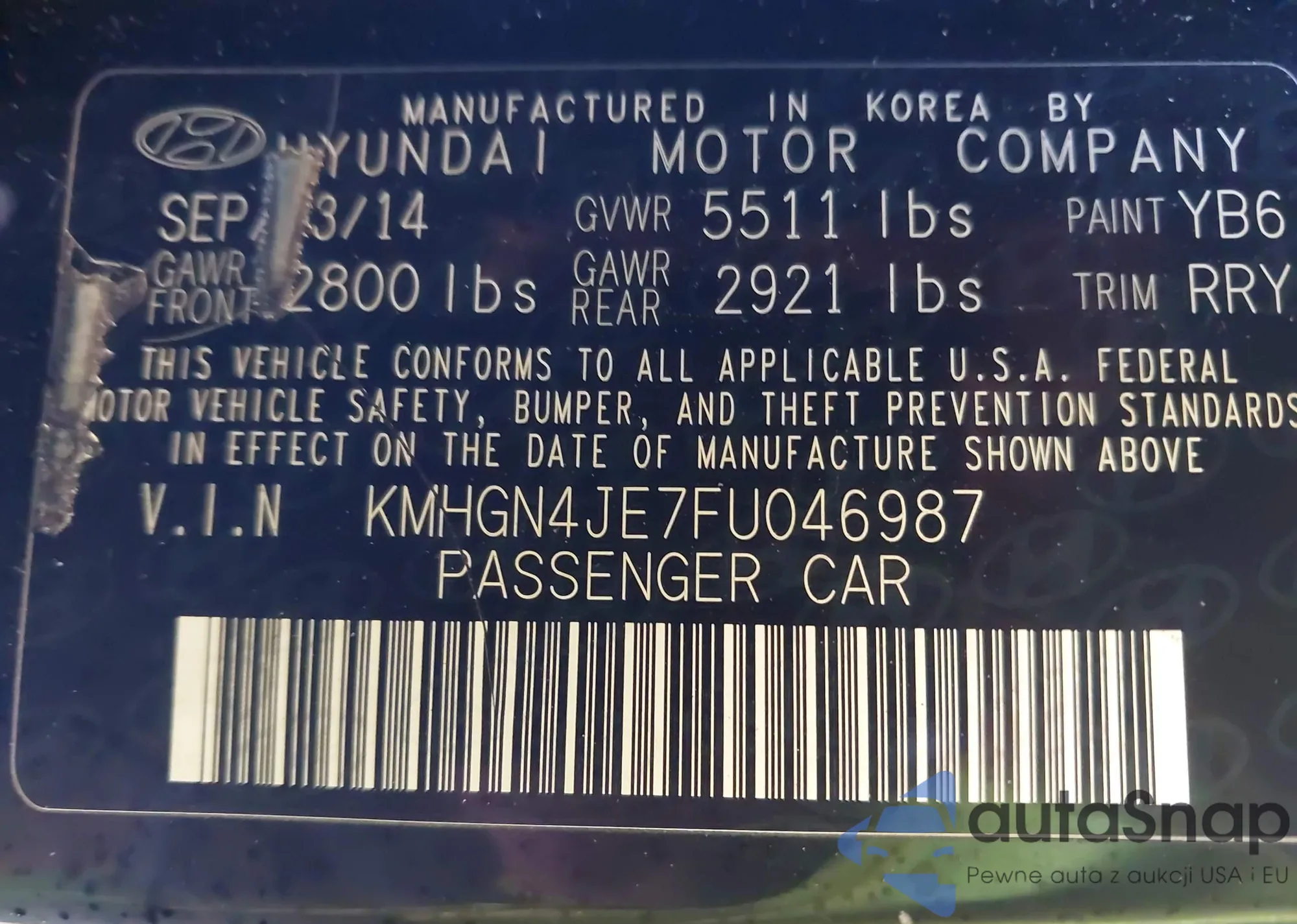 • VIN: KMHGN4JE7FU046987