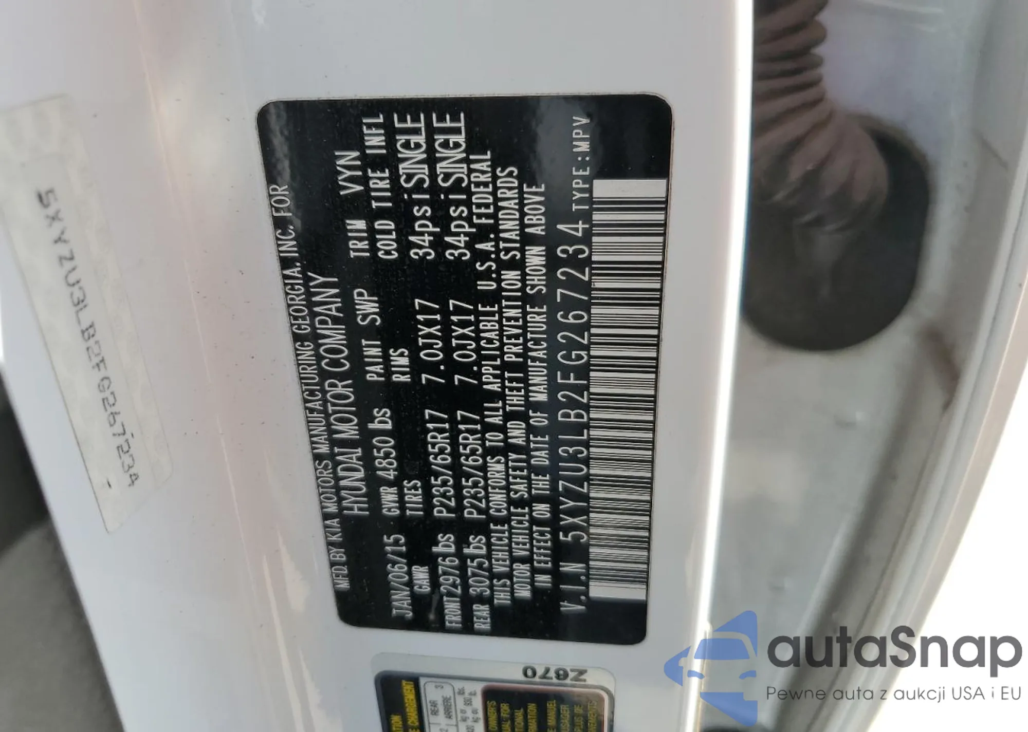 • VIN: 5XYZU3LB2FG267234