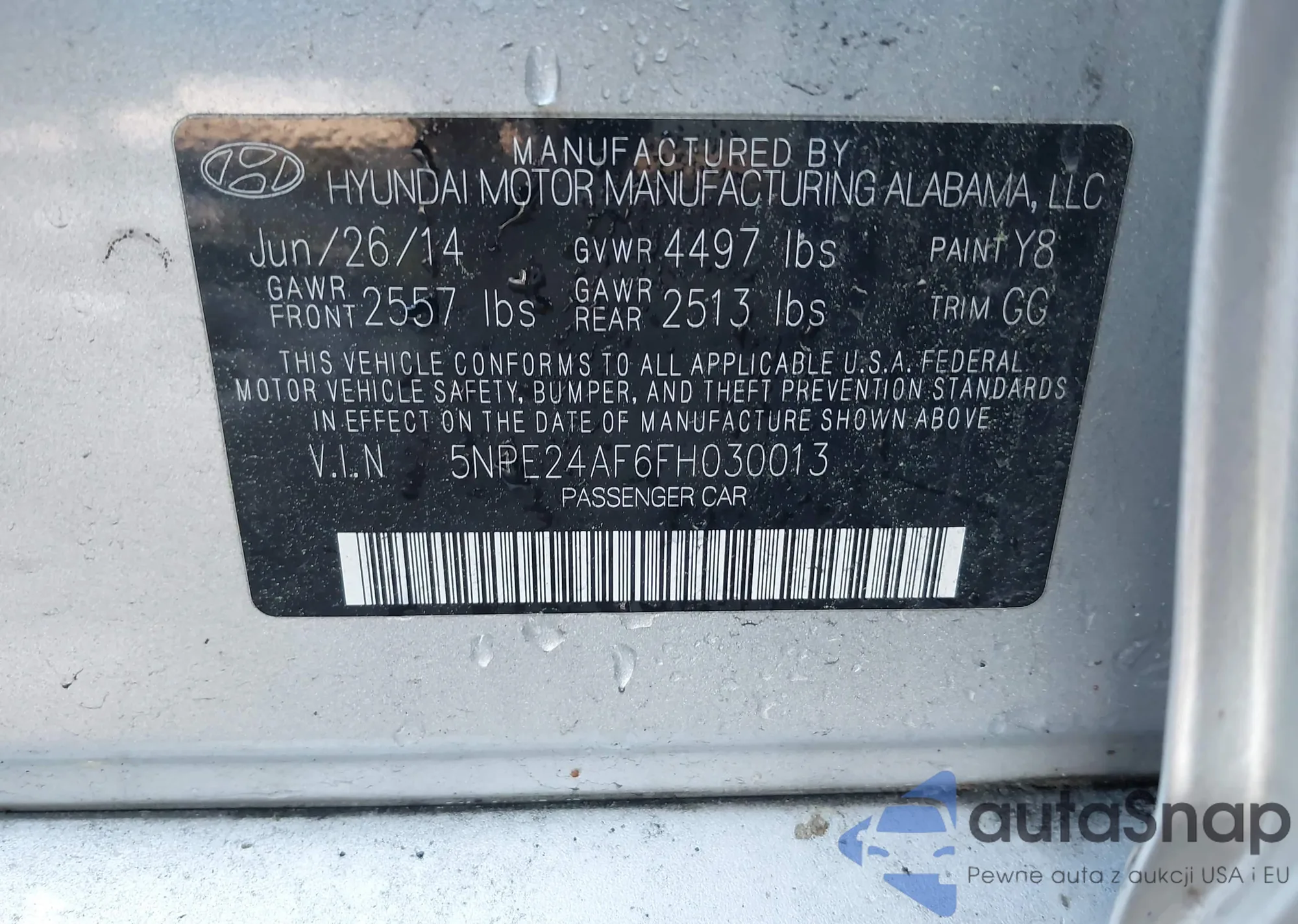 VIN: 5NPE24AF6FH030013