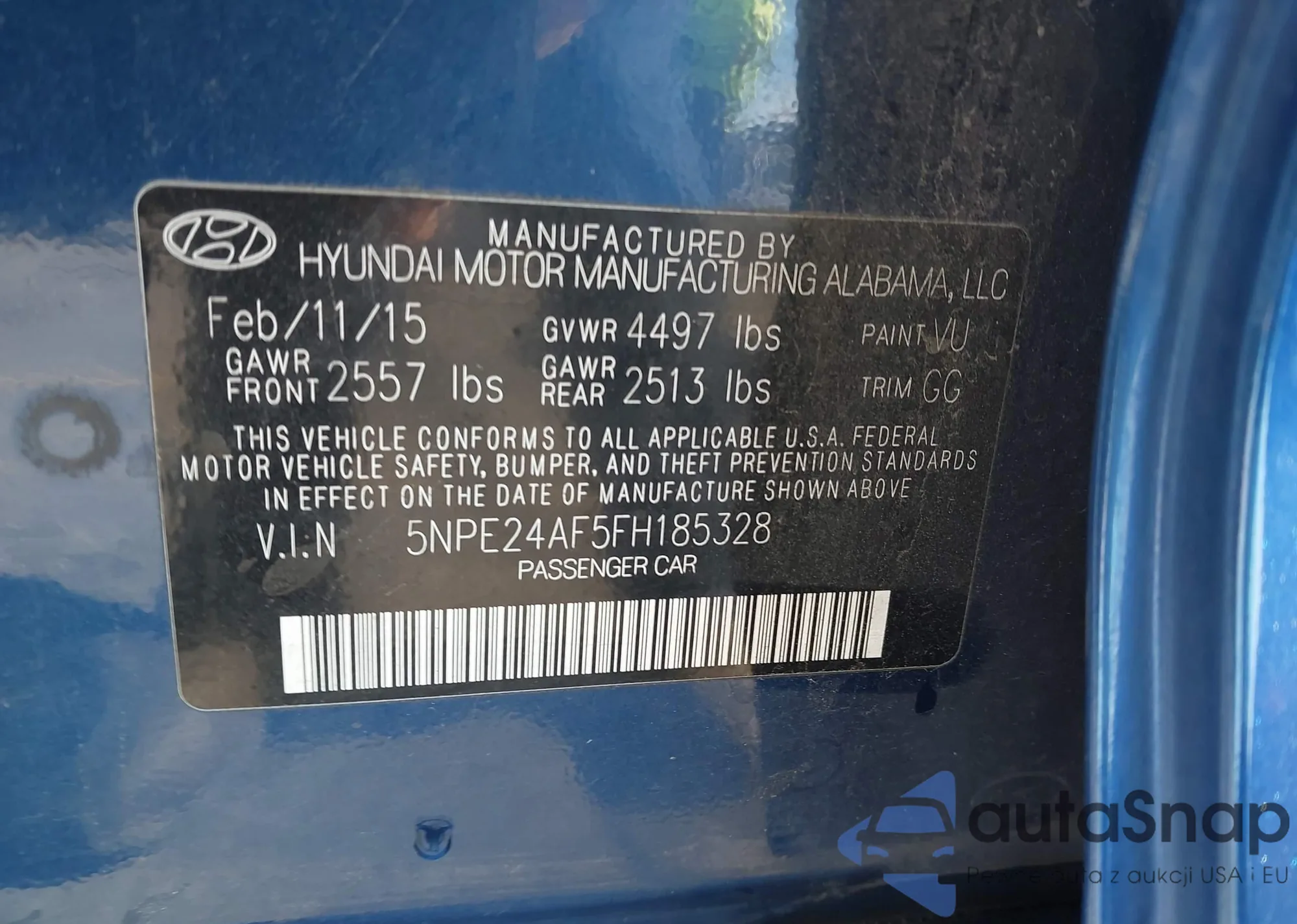 VIN: 5NPE24AF5FH185328
