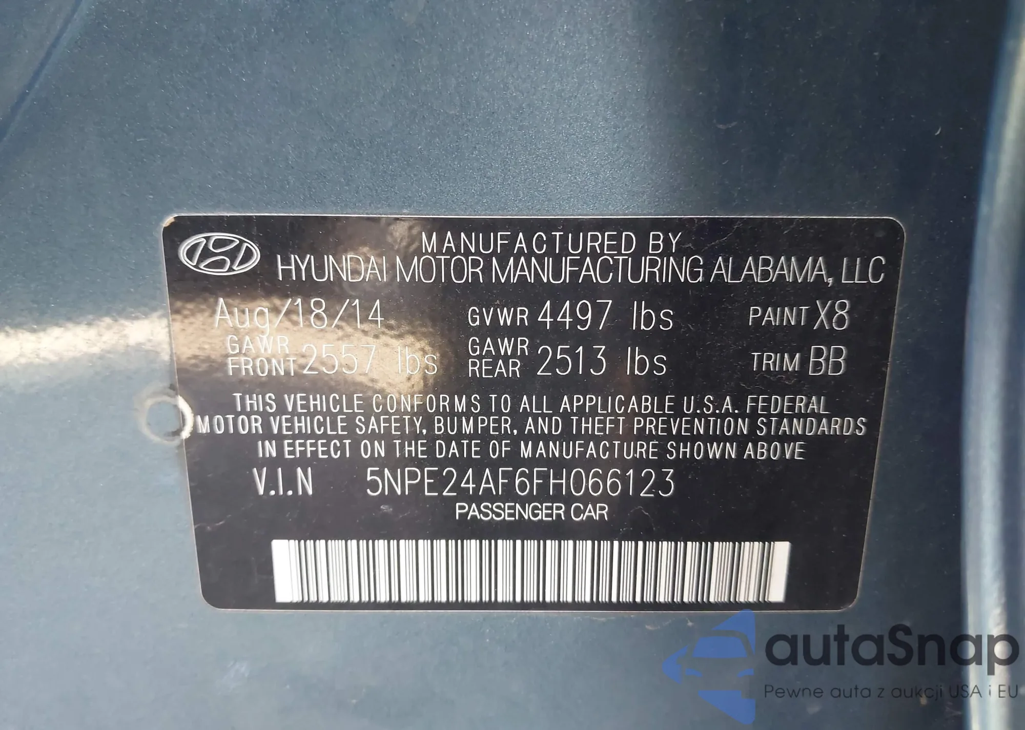 Автомобиль Hyundai Sonata 2015 (VIN 5NPE24AF6FH066123) ранее не участвовал в торгах. Документы чистые, пробег соответствует или ниже среднего по рынку. Продаётся страховой компанией — рекомендуем покупку. Доставка в порт займет около 6–8 недель.