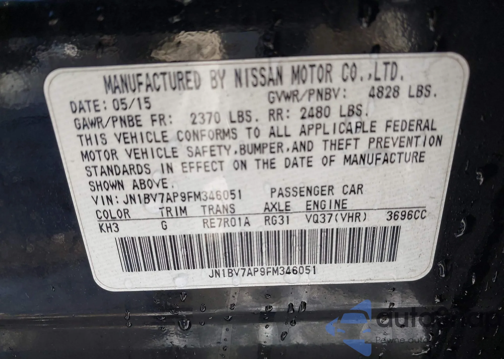 Автомобиль Infiniti Q50 2015 (VIN JN1BV7AP9FM346051) ранее не участвовал в торгах. Документы чистые, пробег соответствует или ниже среднего по рынку. Продаётся страховой компанией — рекомендуем покупку. Доставка в порт займет около 6–8 недель.