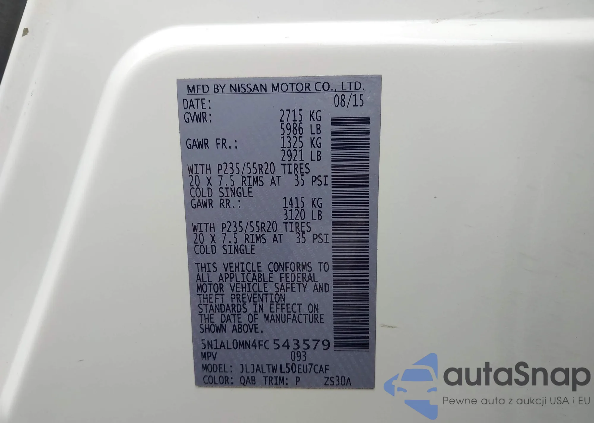 VIN: 5N1AL0MN4FC543579
