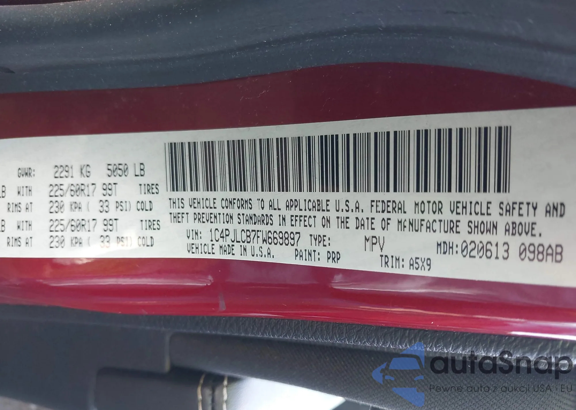 • VIN: 1C4PJLCB7FW669897