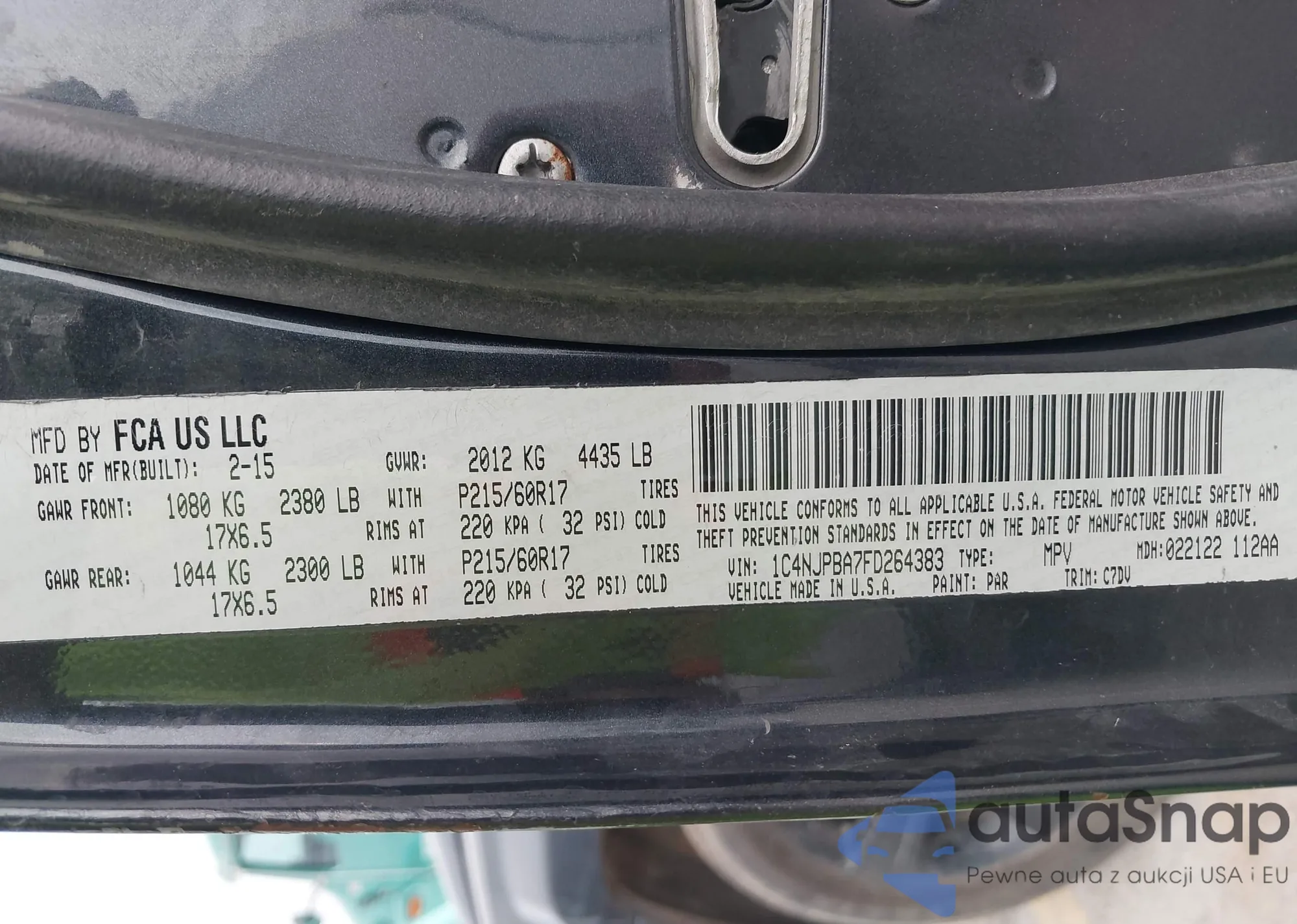 • VIN: 1C4NJPBA7FD264383