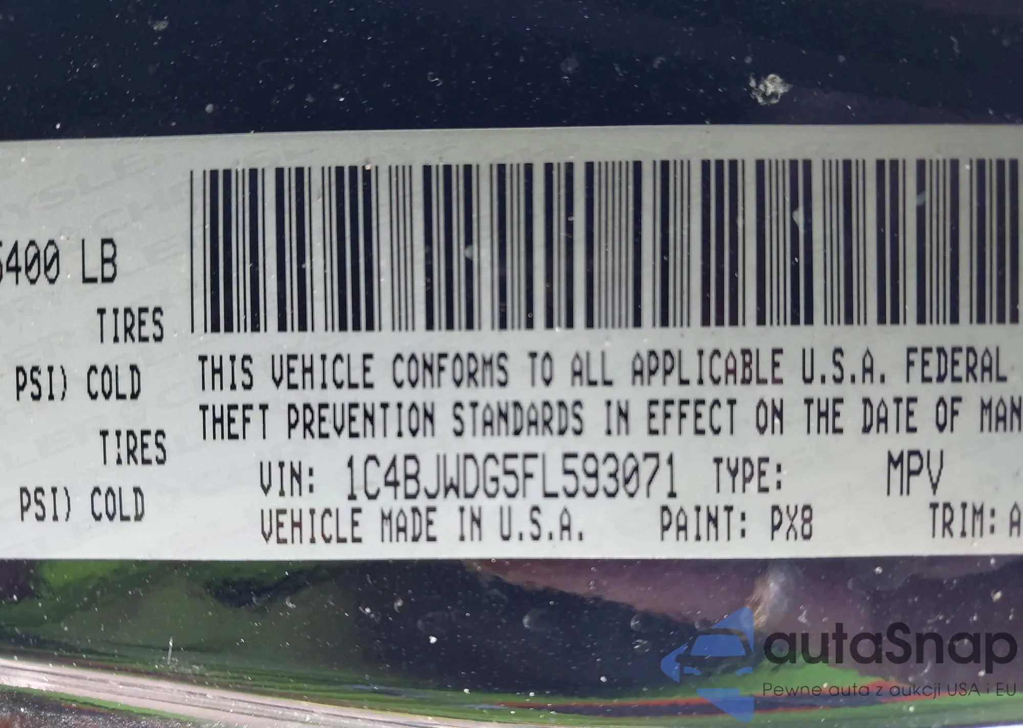 Автомобиль Jeep Wrangler 2015 (VIN 1C4BJWDG5FL593071) ранее не участвовал в торгах. Документы чистые, пробег соответствует или ниже среднего по рынку. Продаётся страховой компанией — рекомендуем покупку. Доставка в порт займет около 6–8 недель.