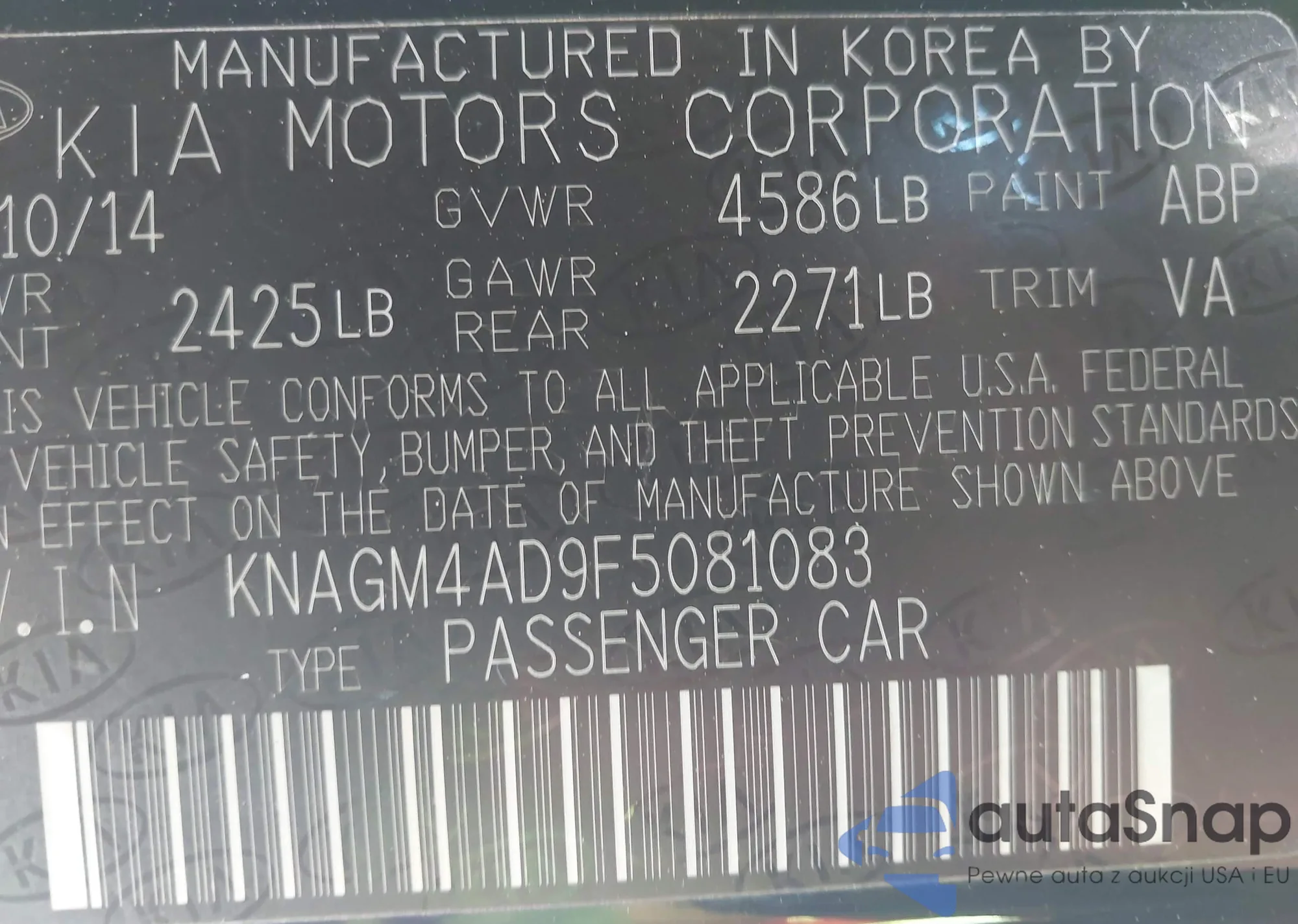 VIN: KNAGM4AD9F5081083