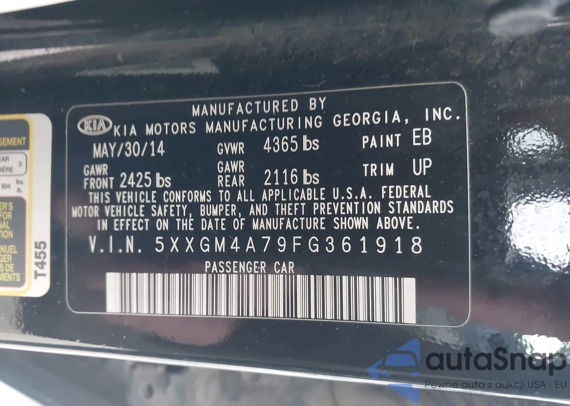 Автомобиль Kia Optima 2015 (VIN 5XXGM4A79FG361918) ранее не участвовал в торгах. Документы чистые, пробег соответствует или ниже среднего по рынку. Продаётся страховой компанией — рекомендуем покупку. Доставка в порт займет около 6–8 недель.