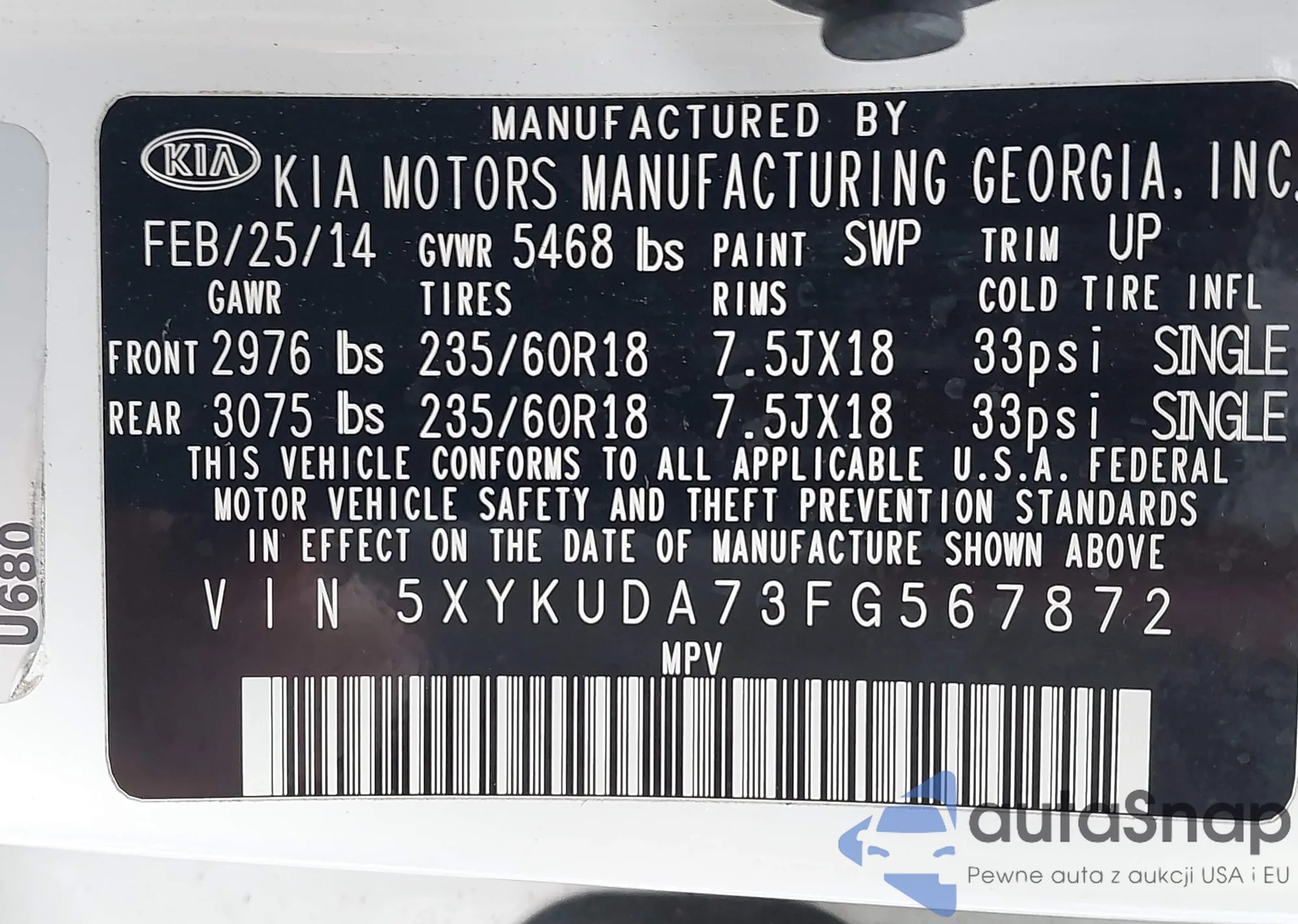VIN: 5XYKUDA73FG567872