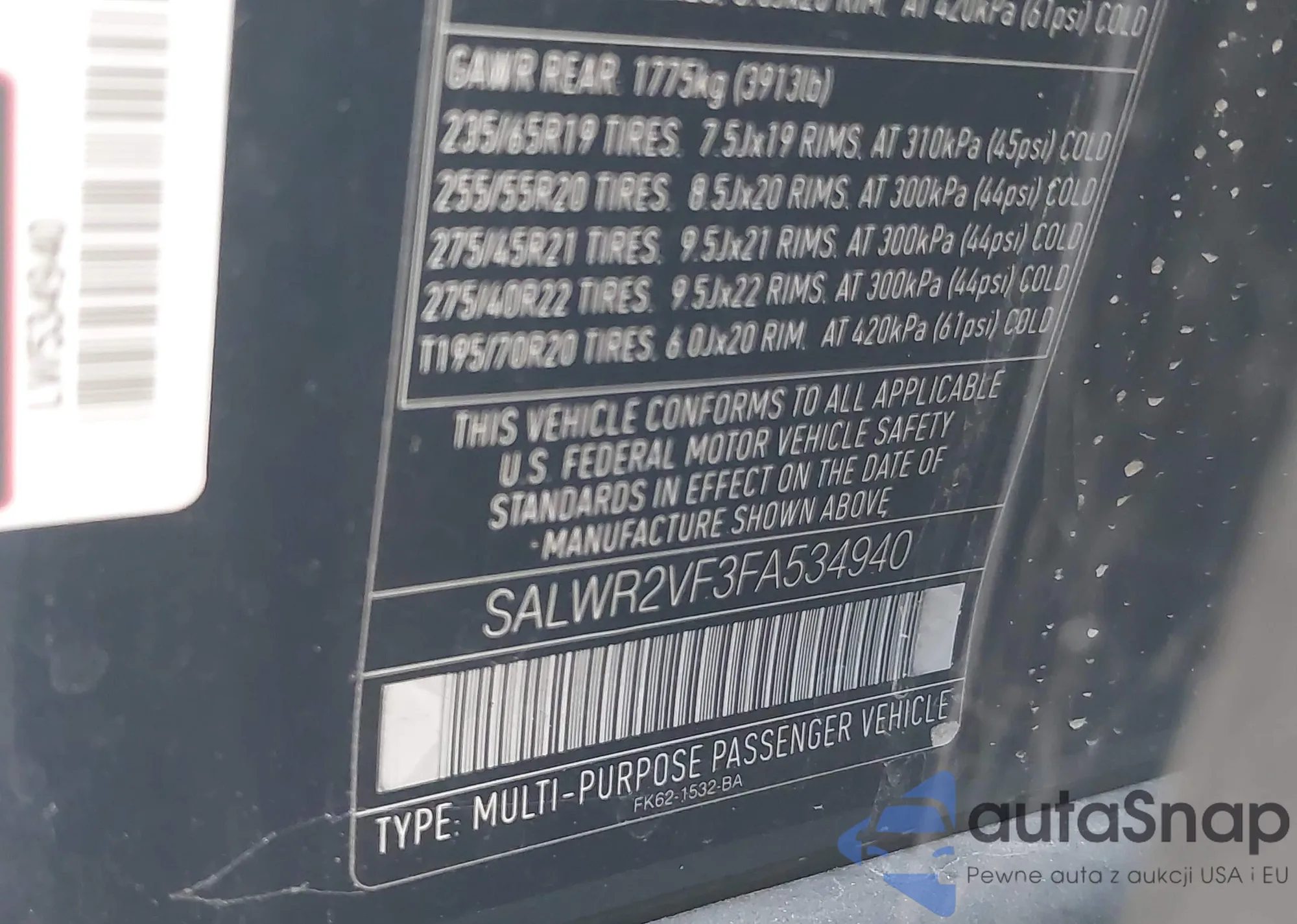 • VIN: SALWR2VF3FA534940