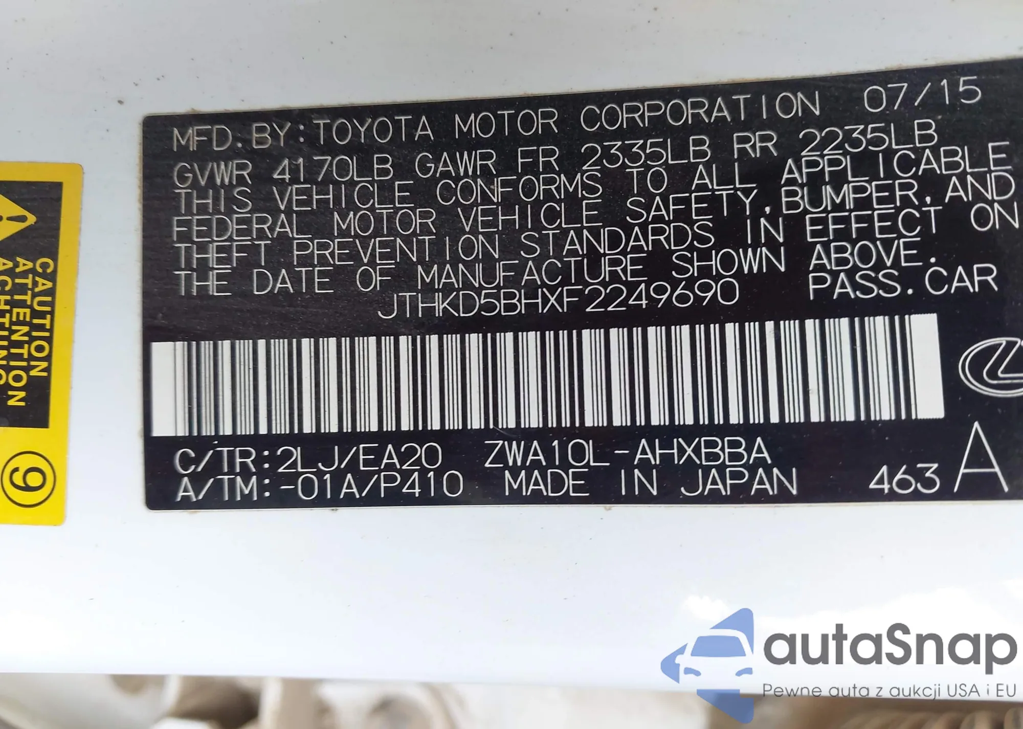 • VIN: JTHKD5BHXF2249690