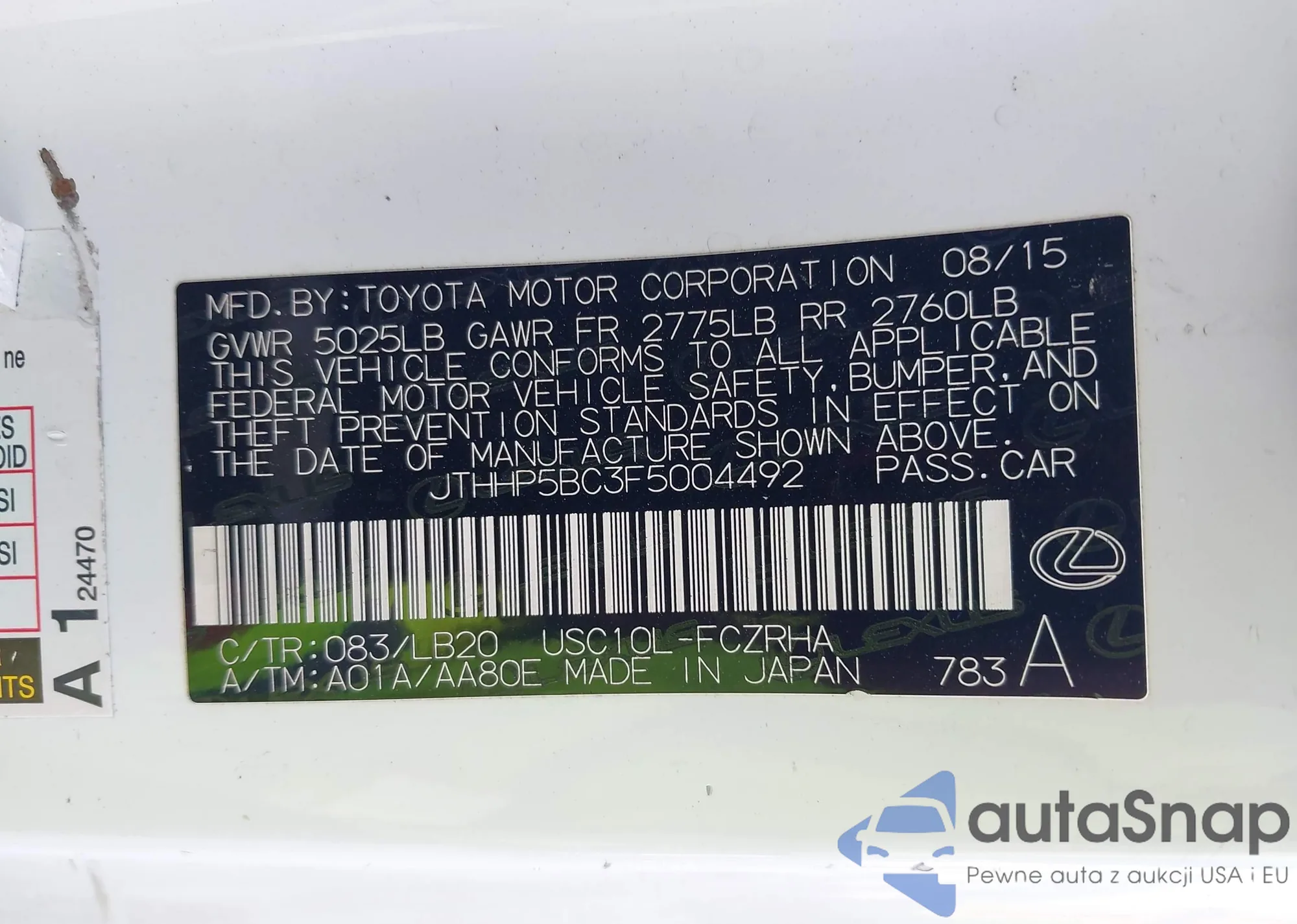 VIN: JTHHP5BC3F5004492