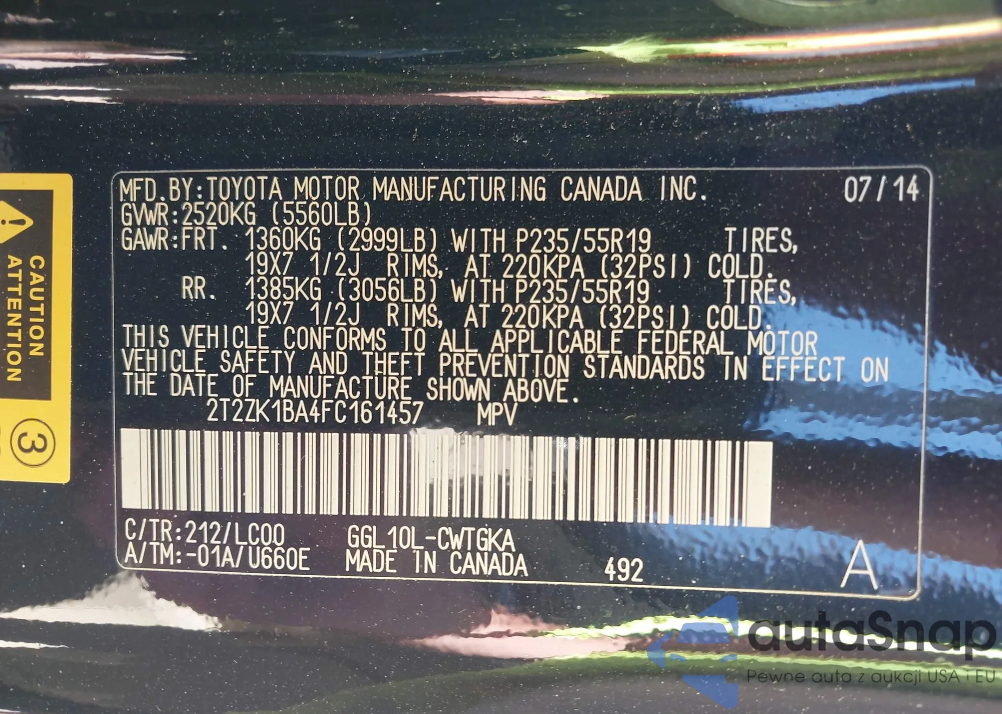 VIN: 2T2ZK1BA4FC161457