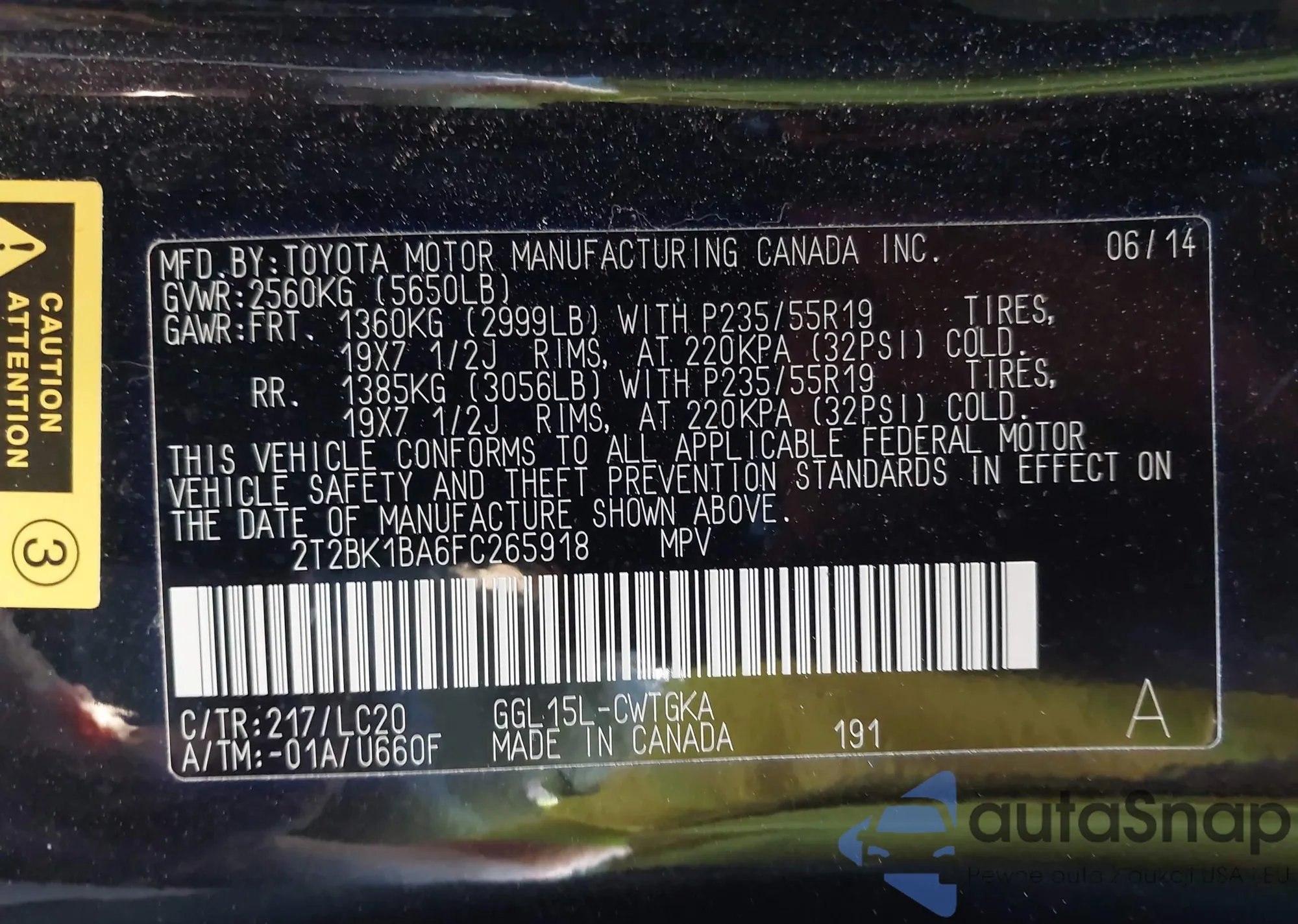 VIN: 2T2BK1BA6FC265918