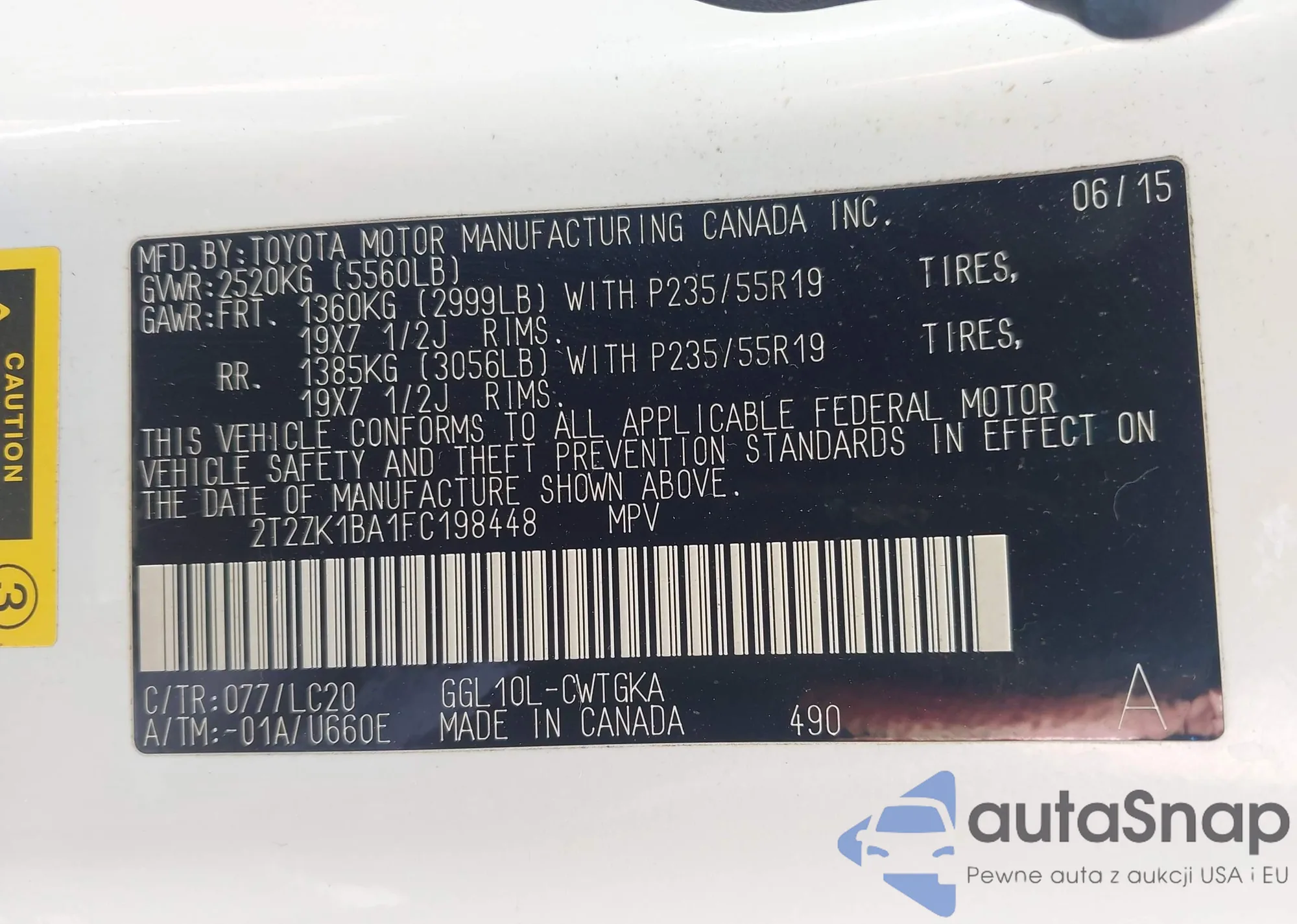 VIN: 2T2ZK1BA1FC198448