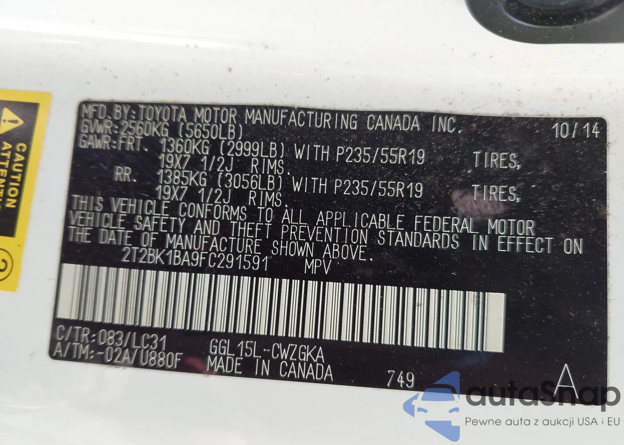 VIN: 2T2BK1BA9FC291591