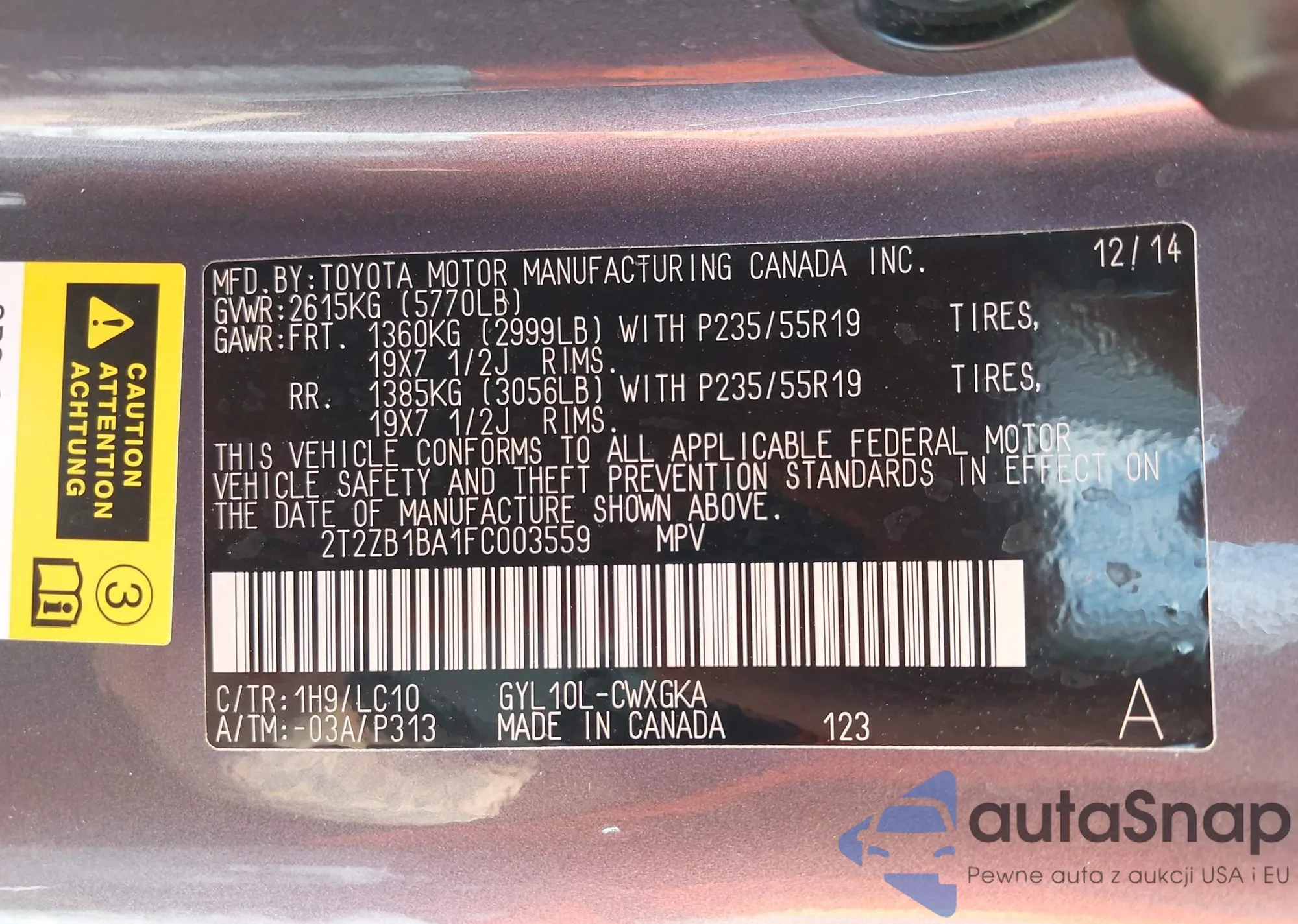 VIN: 2T2ZB1BA1FC003559