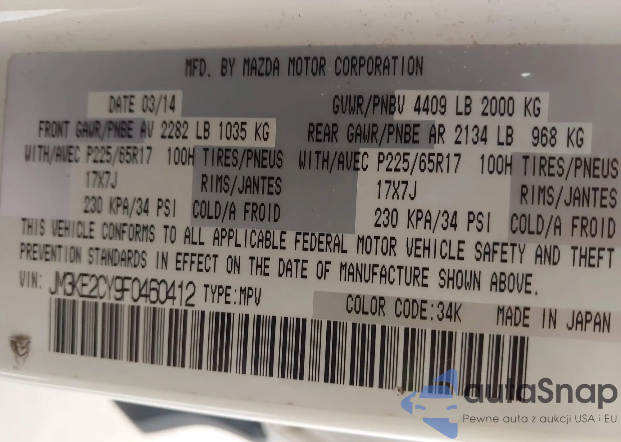 VIN: JM3KE2CY9F0460412