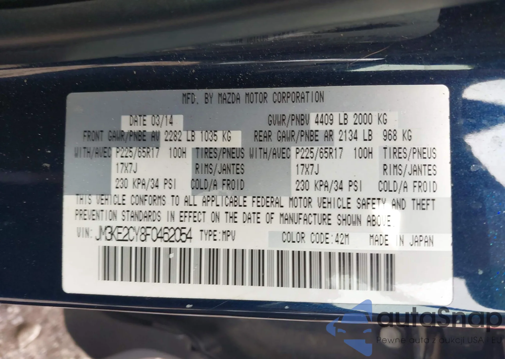 Автомобиль Mazda CX-5 2015 (VIN JM3KE2CY8F0462054) ранее не участвовал в торгах. Документы чистые, пробег соответствует или ниже среднего по рынку. Продаётся страховой компанией — рекомендуем покупку. Доставка в порт займет около 6–8 недель.
