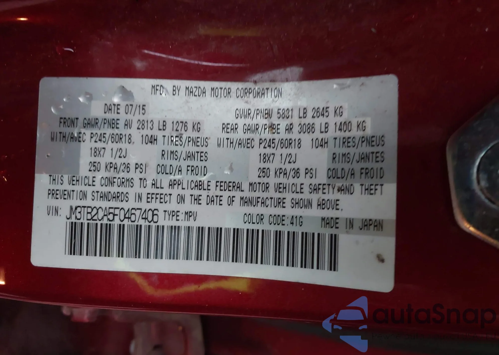 VIN: JM3TB2CA5F0467406