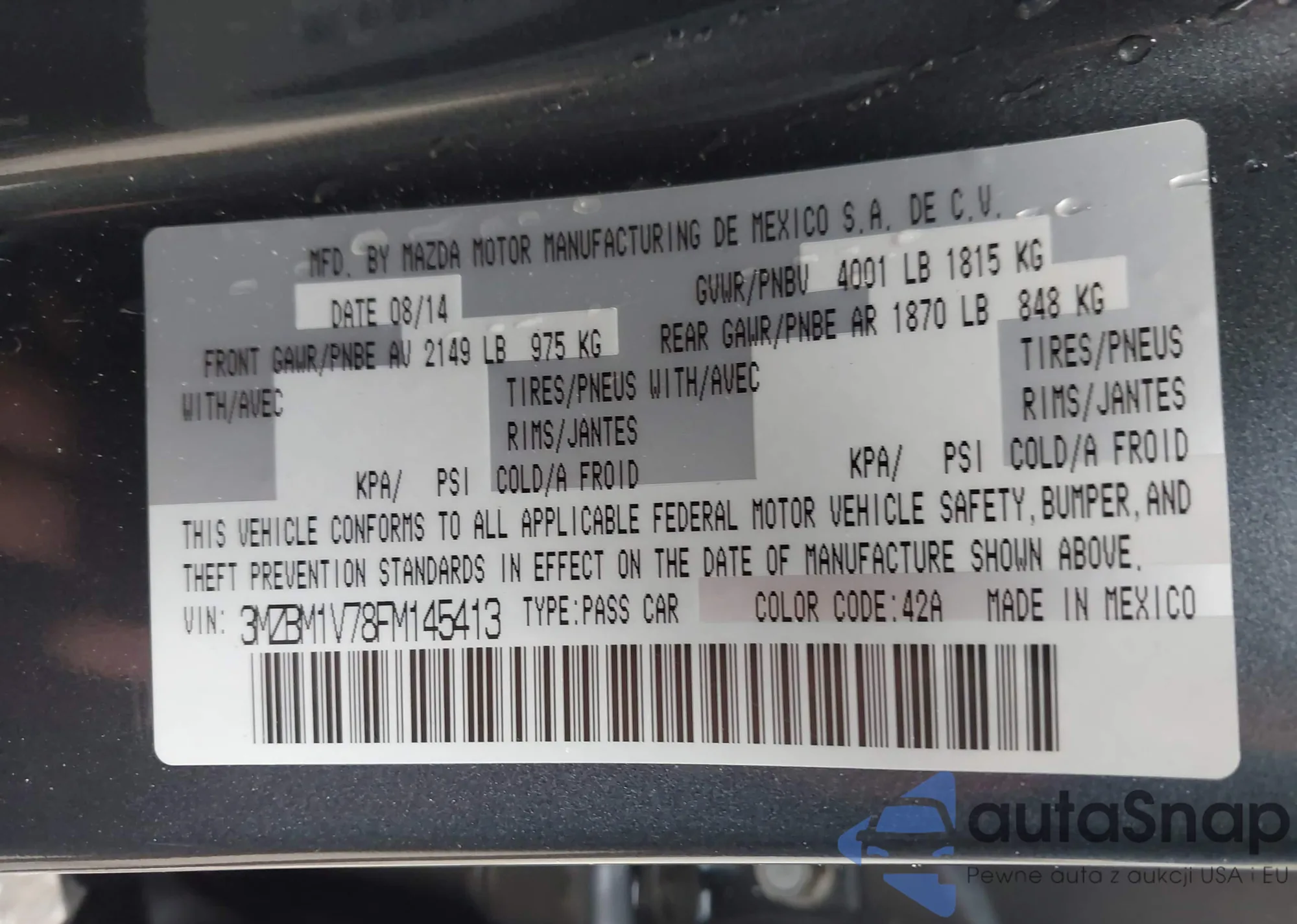 VIN: 3MZBM1V78FM145413