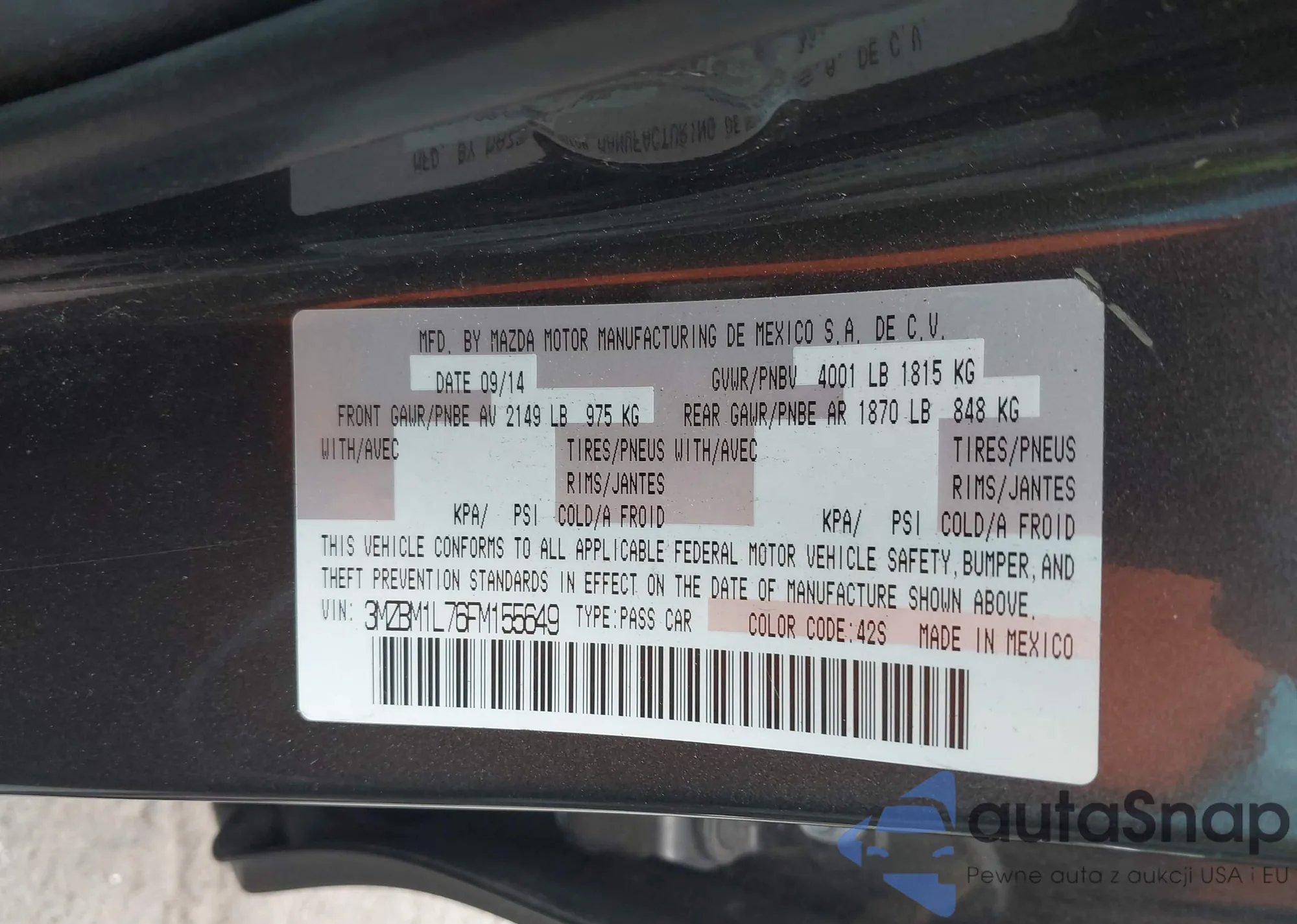 VIN: 3MZBM1L76FM155649