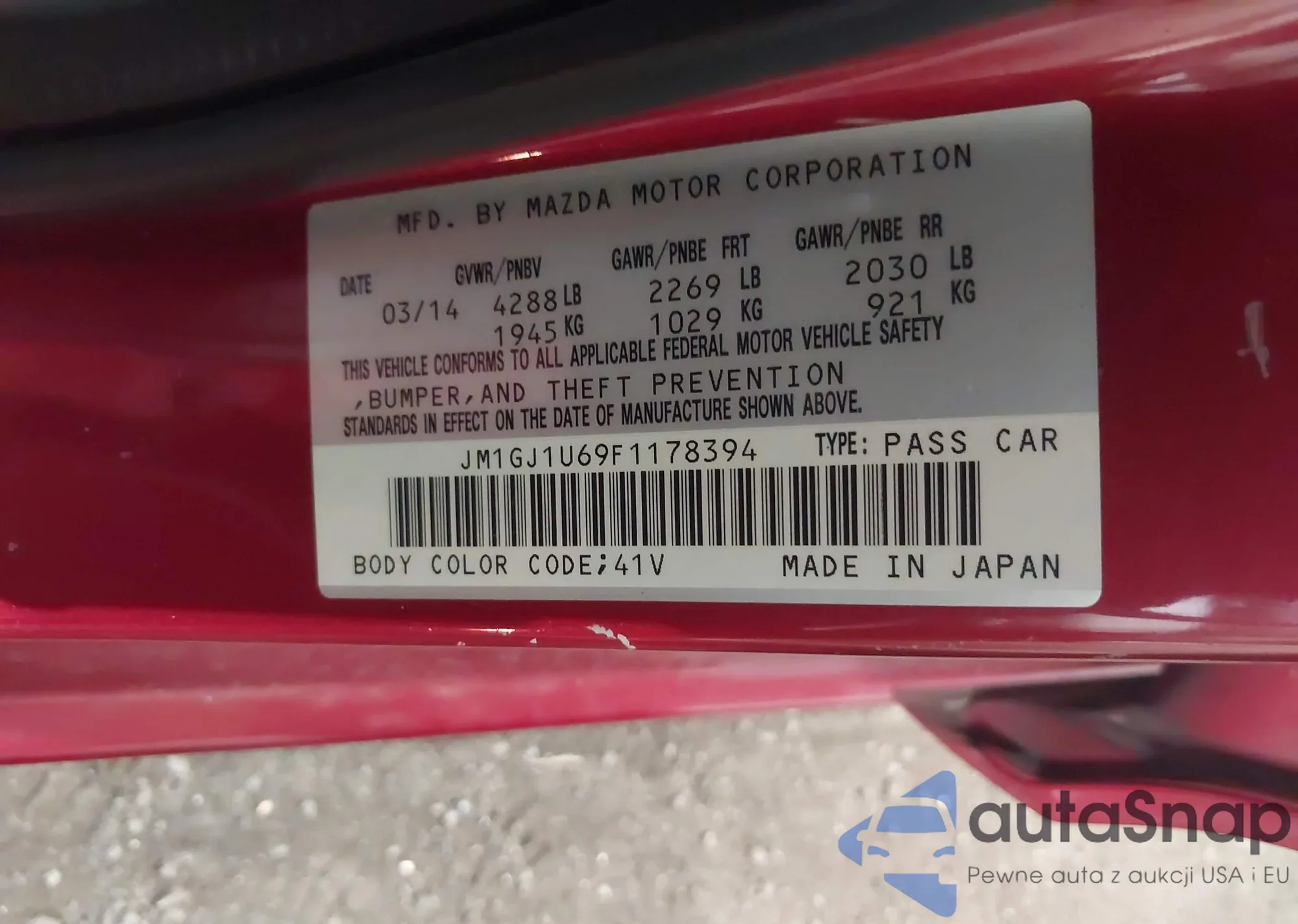 VIN: JM1GJ1U69F1178394