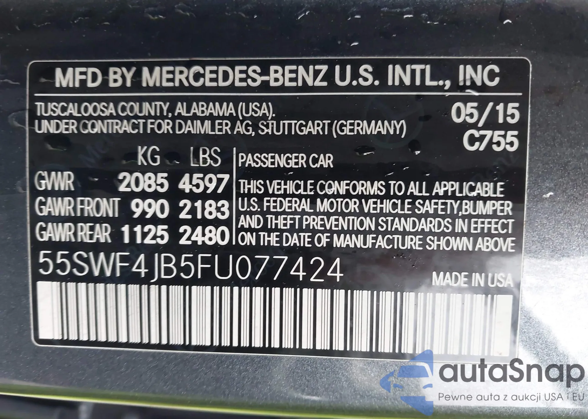 Автомобиль Mercedes-Benz C-klasse 2015 (VIN 55SWF4JB5FU077424) продаётся непроверенным продавцом. Рекомендуем проверить отчет Carfax и подтвердить возможность регистрации перед покупкой.
