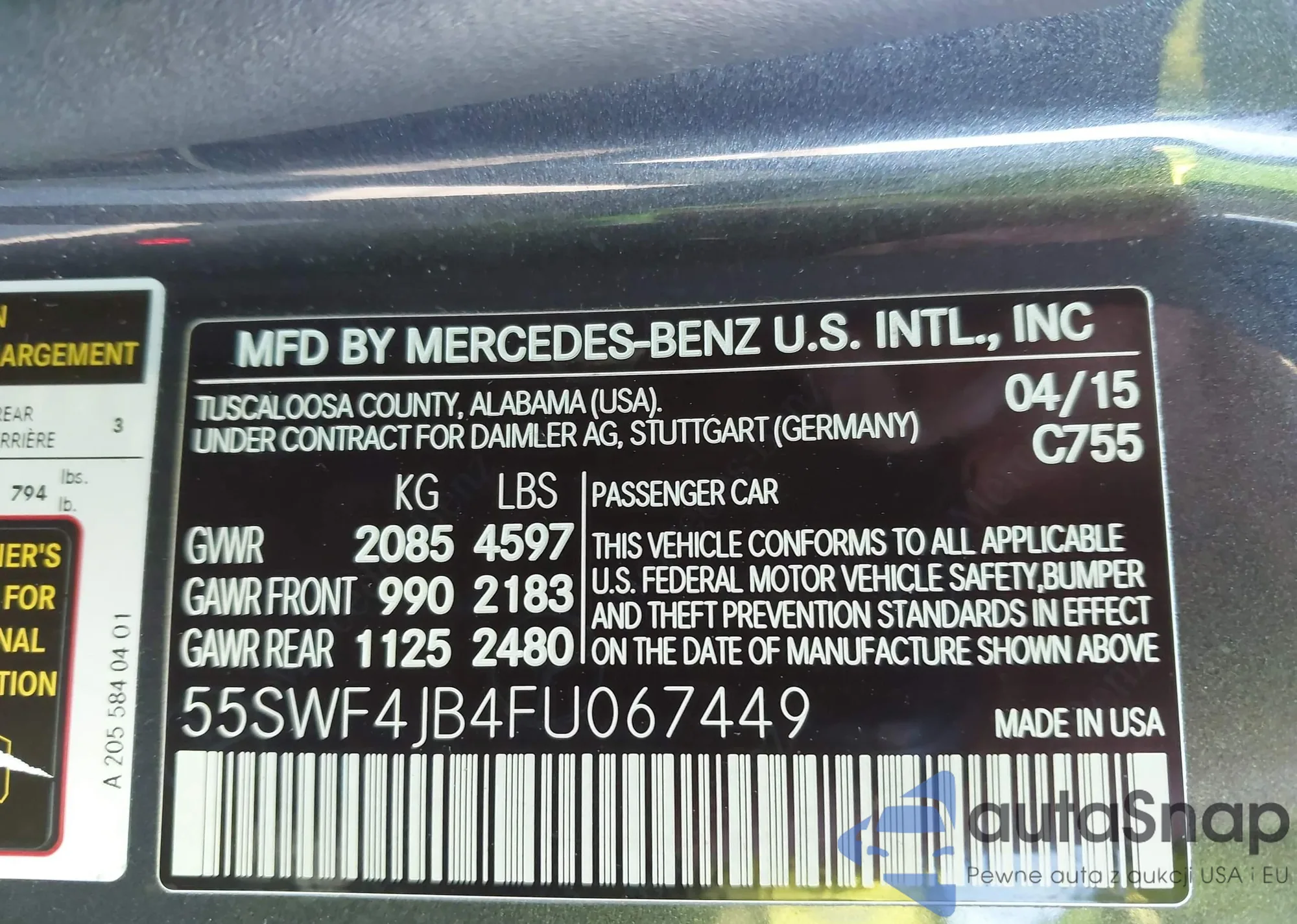 Автомобиль Mercedes-Benz C-klasse 2015 (VIN 55SWF4JB4FU067449) ранее не участвовал в торгах. Документы чистые, пробег соответствует или ниже среднего по рынку. Продаётся страховой компанией — рекомендуем покупку. Доставка в порт займет около 6–8 недель.