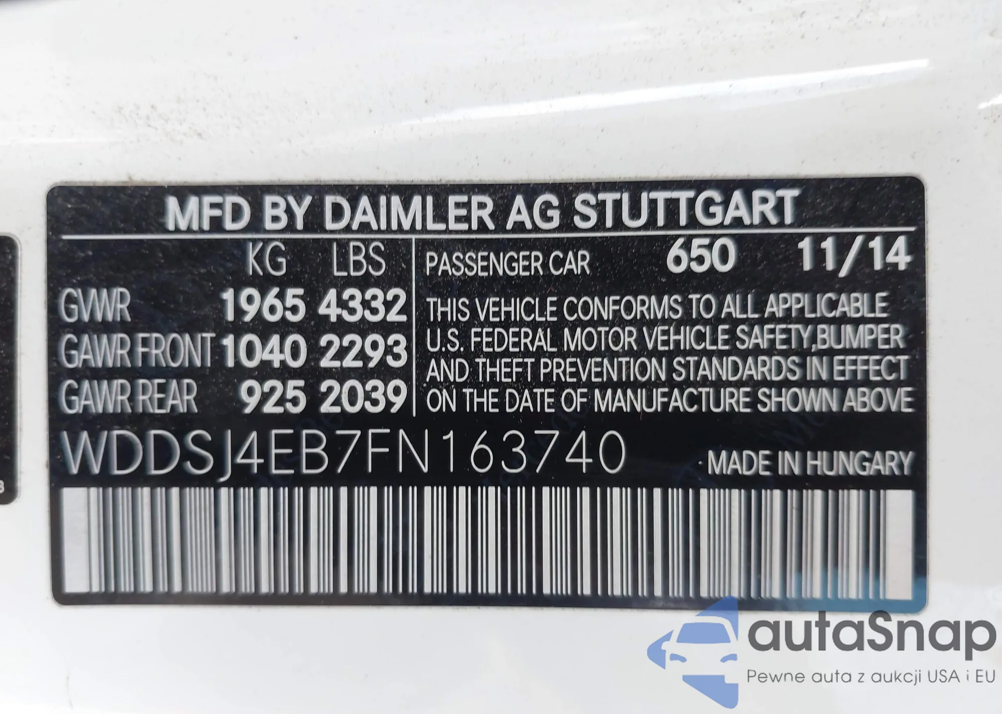 VIN: WDDSJ4EB7FN163740
